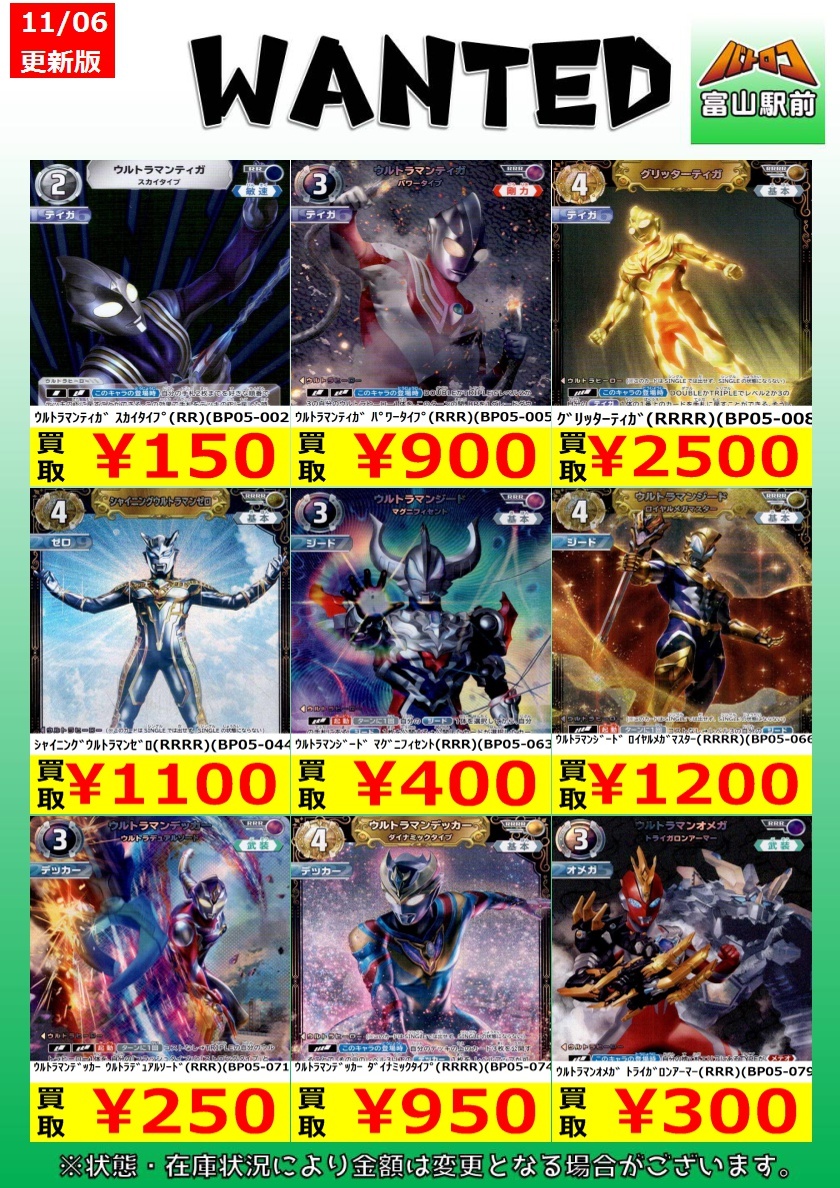 #ウルトラマンカードゲーム 高価買取】 ウルトラマンティガ スカイタイプ(RR)(BP05-002) ¥150 ウルトラマンデッカー ウルトラデュアルソード(RRR)(BP05-071) ¥250 ウルトラマンオメガ トライガロンアーマー(RRR)(BP05-079) ¥300 #トヤロコ #バトロコ pic.x.com/oIqbdzUTTJ