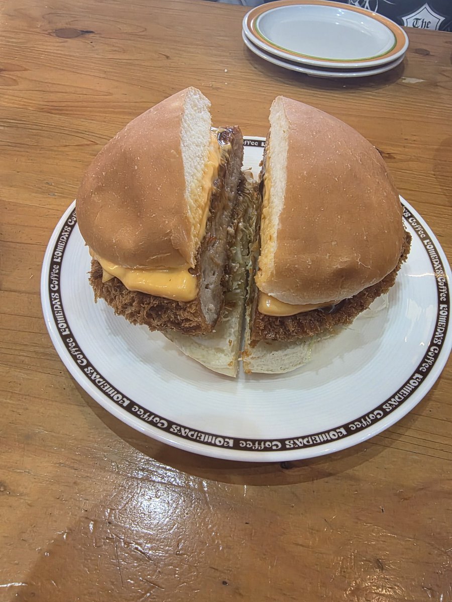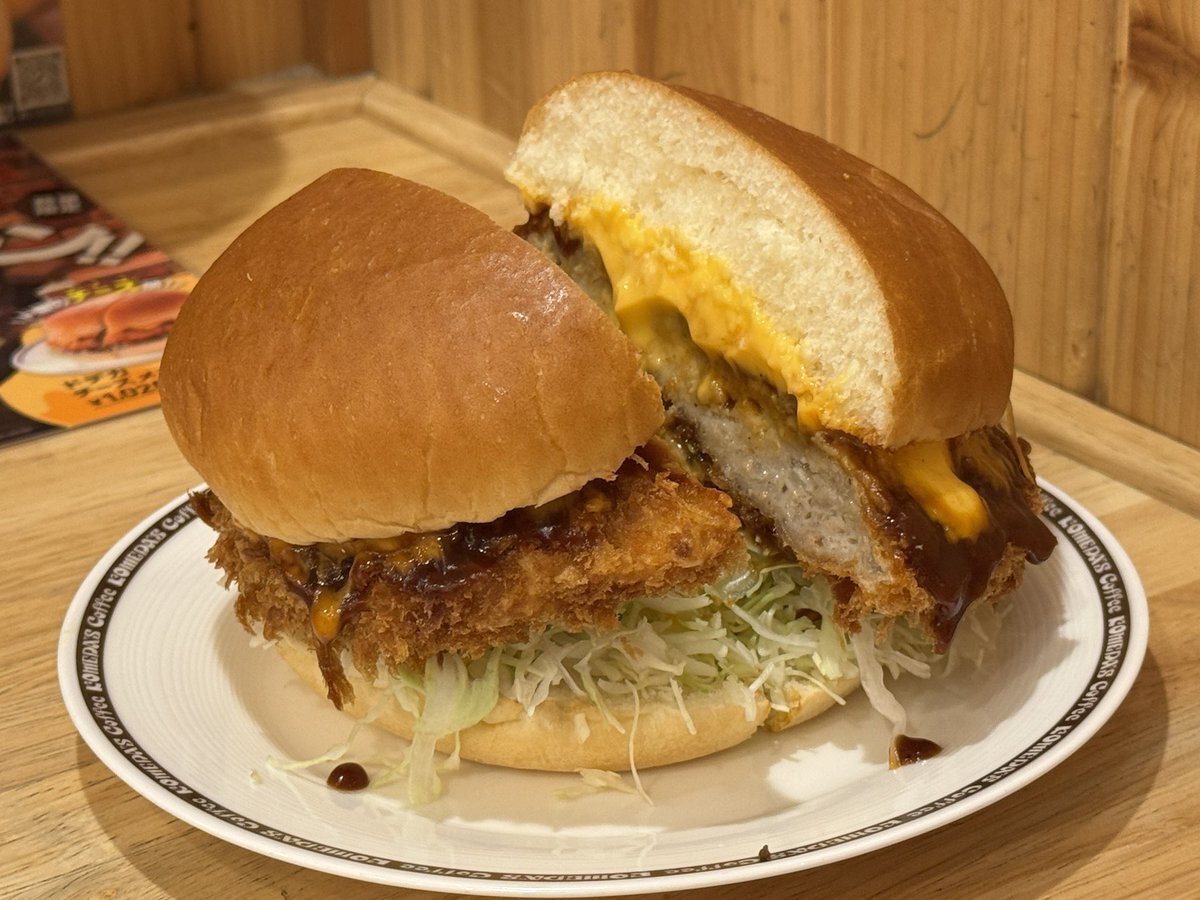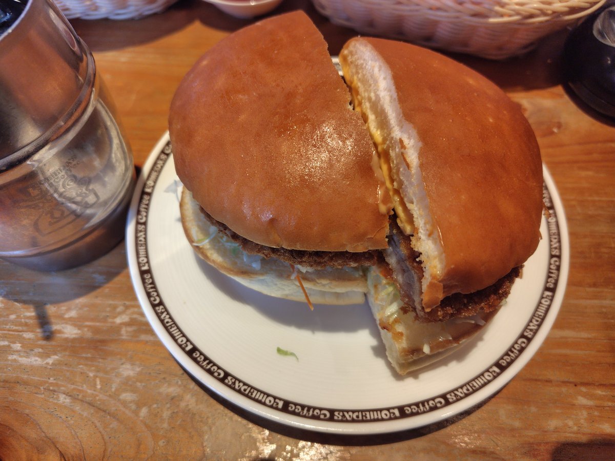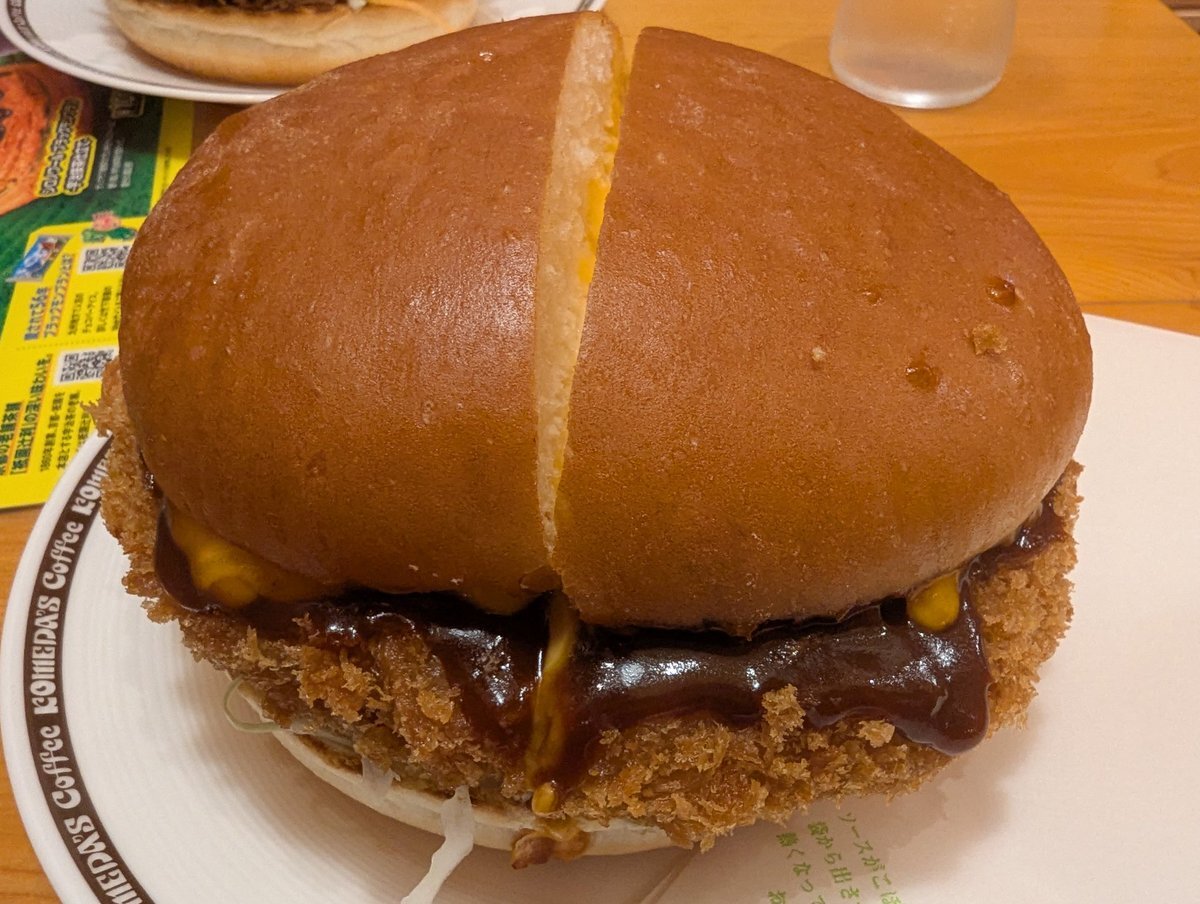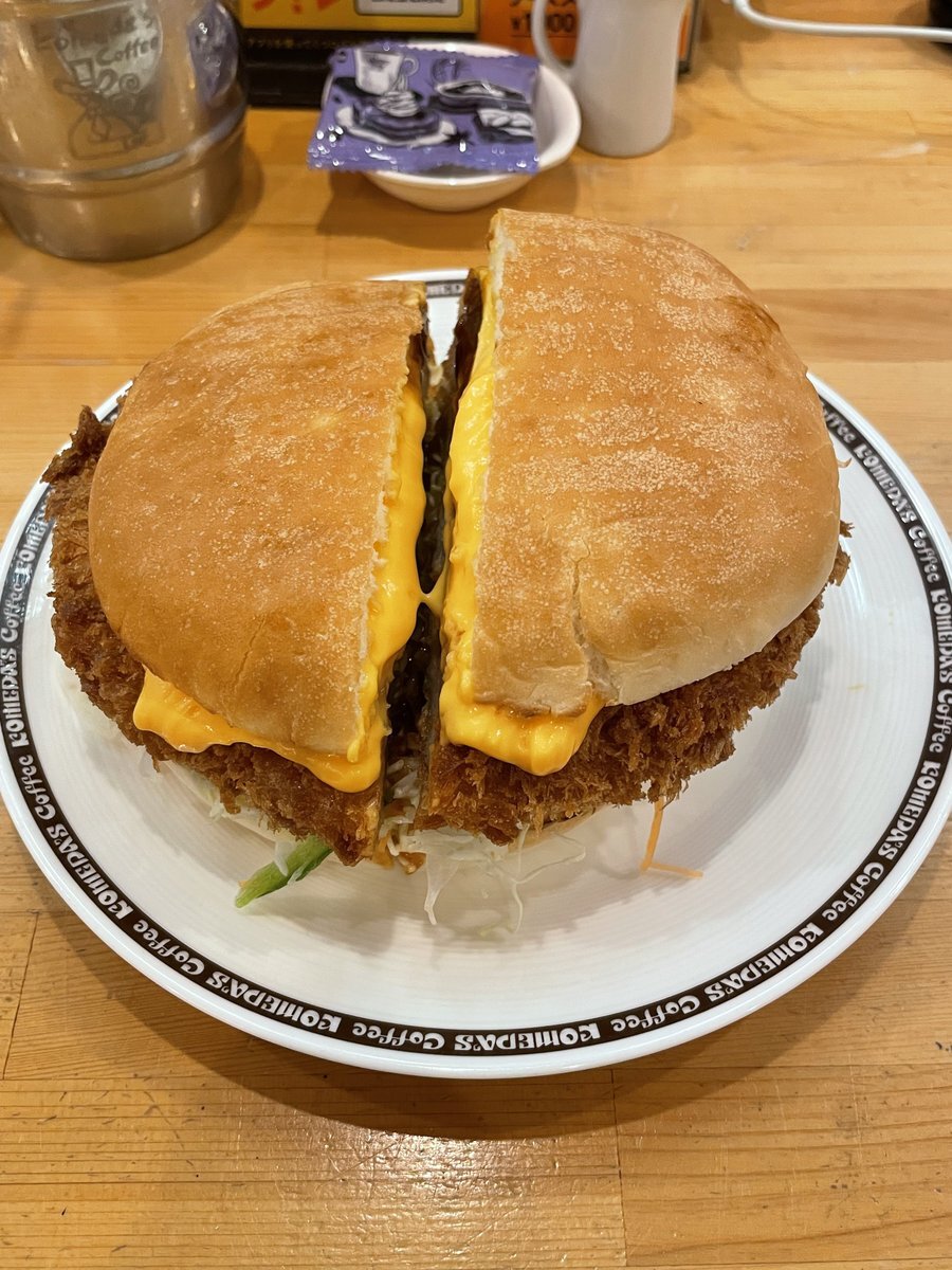 先日食べてハマった、コメダ珈琲の「ドデカチーズメンチバーガー」を再度喰らう~(・ω・)/ デミグラスソースが染み込んだ迫力のメンチカツに、たっぷりのとろけるチーズ、そして全体の味をピシッと〆る辛子マヨが相変わらず良き~🥰🥰🥰 pic.x.com/jFNHtywgg2