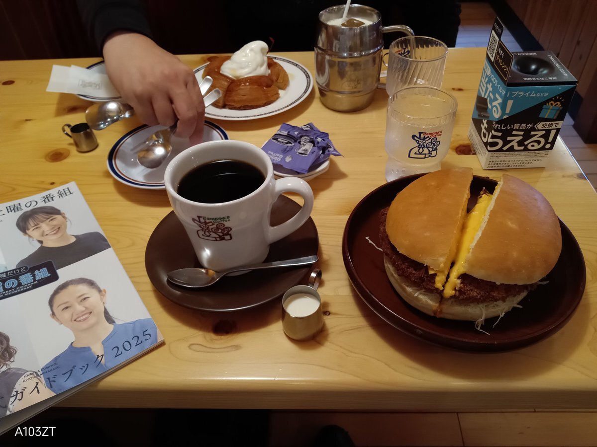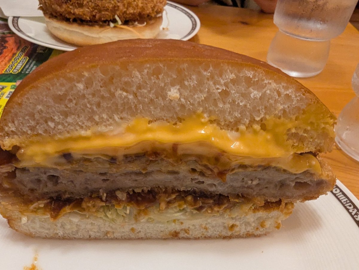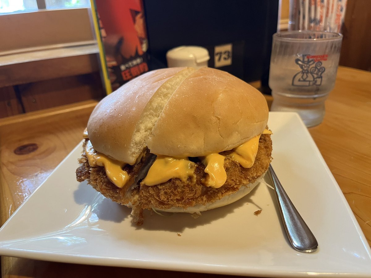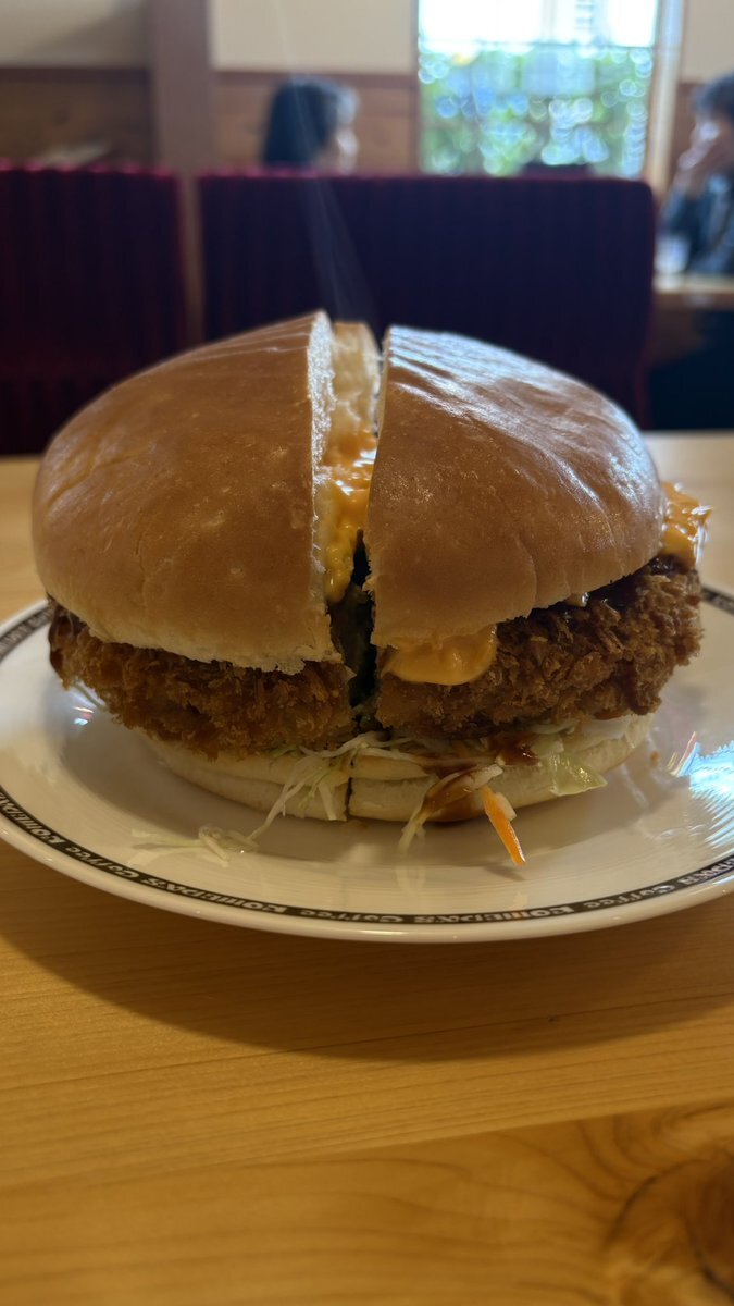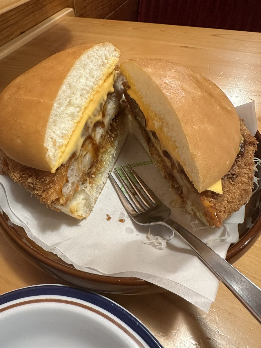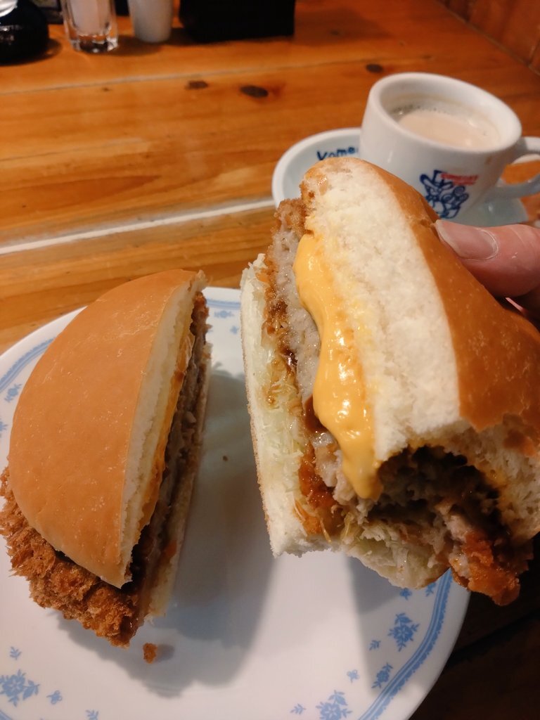 先日食べてハマった、コメダ珈琲の「ドデカチーズメンチバーガー」を再度喰らう~(・ω・)/ デミグラスソースが染み込んだ迫力のメンチカツに、たっぷりのとろけるチーズ、そして全体の味をピシッと〆る辛子マヨが相変わらず良き~🥰🥰🥰 pic.x.com/jFNHtywgg2