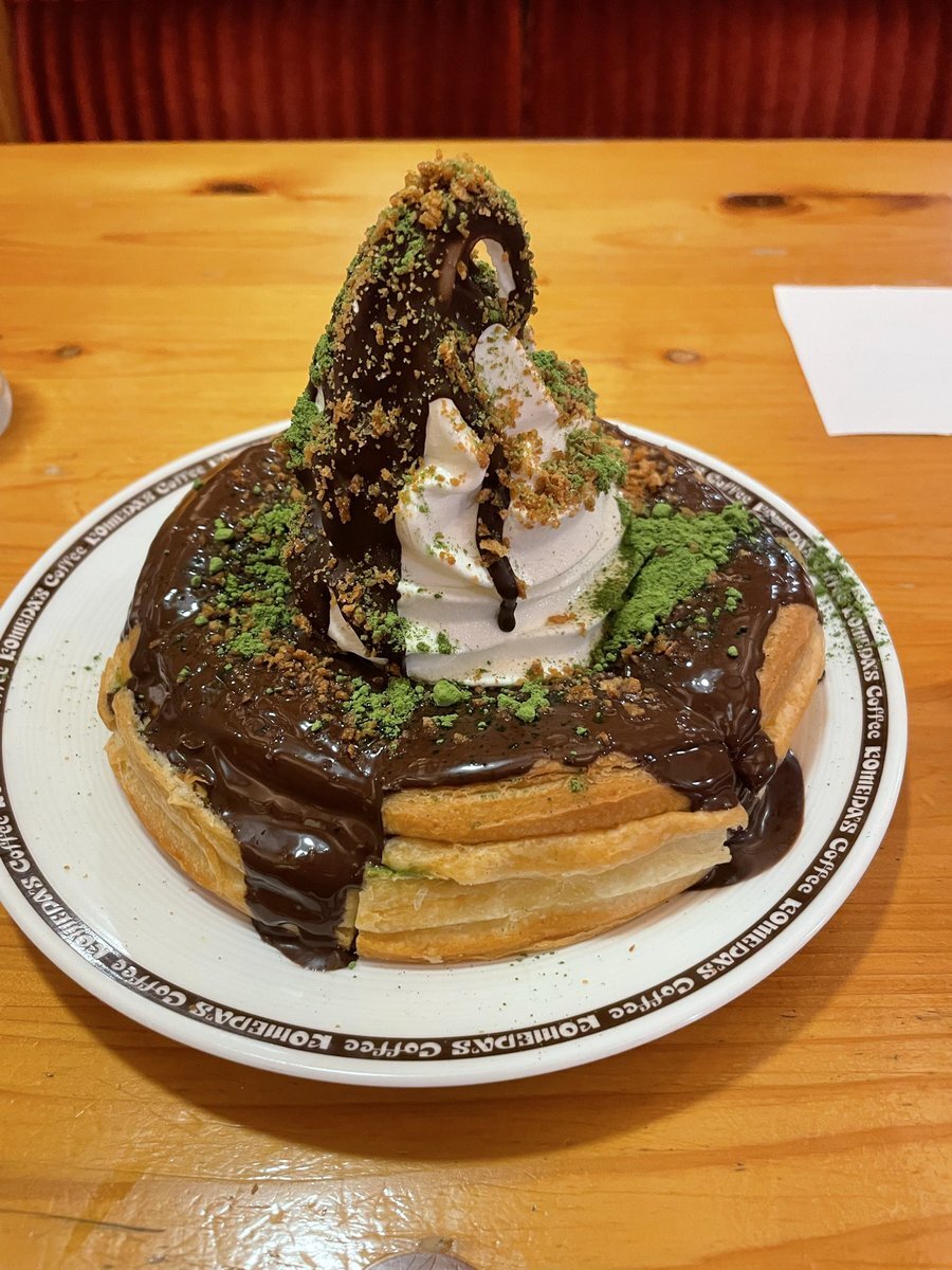 コメダ珈琲 ドデカチーズメンチバーガー シロノワール ブラックモンブラン -宇治抹茶仕立て- 思ってたより可愛らしかった。🌸もっと“戦う覚悟”で来たのに。☺️ pic.x.com/ejKL9LDLQs