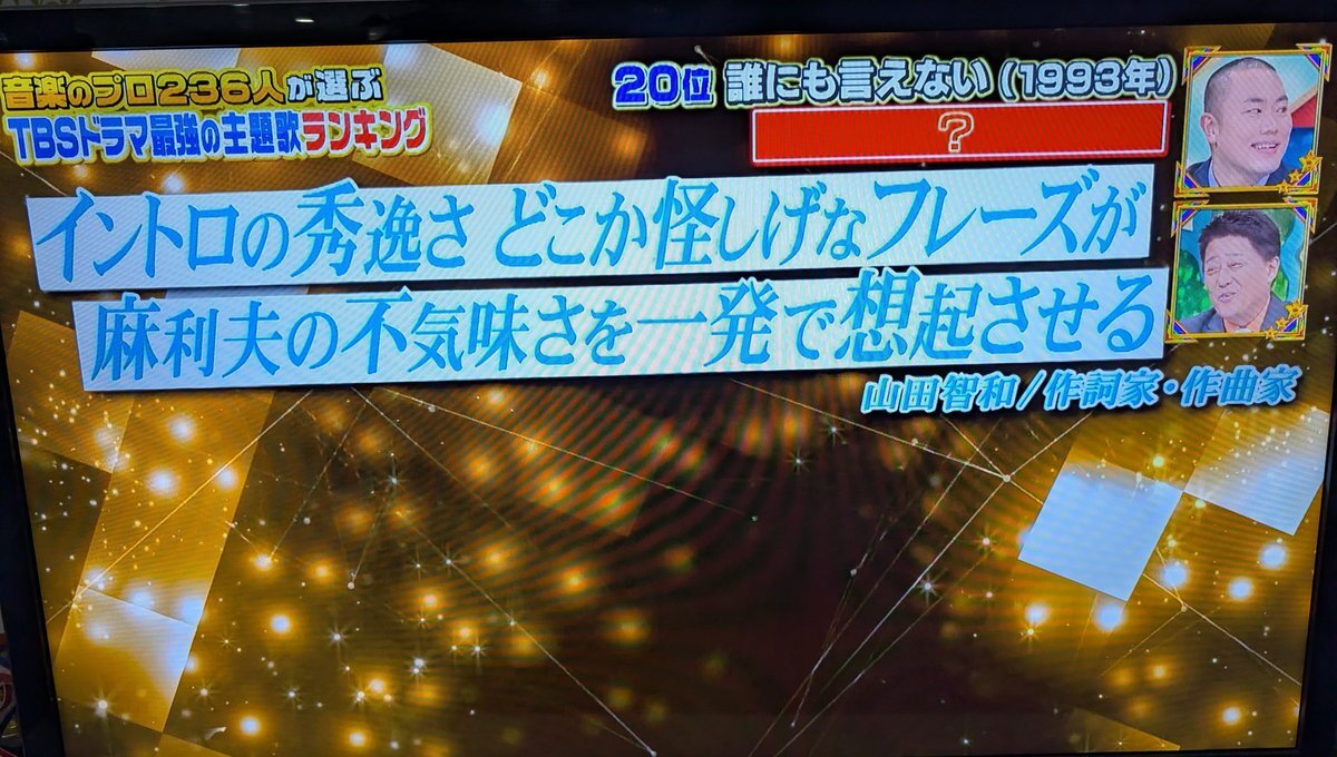 本日TBSで放送されました「音楽のプロ236人が選ぶ TBSドラマ最強の主題歌ランキング」で2曲選出・コメント寄稿させていただきました。 この2つのドラマを観ていた高校生の頃には、約30年先のこんな未来は全く予想もつかなかったです。 【音楽のプロ】として、引き続き精進して参ります🙂↕️ pic.x.com/rT1R3MdB8y