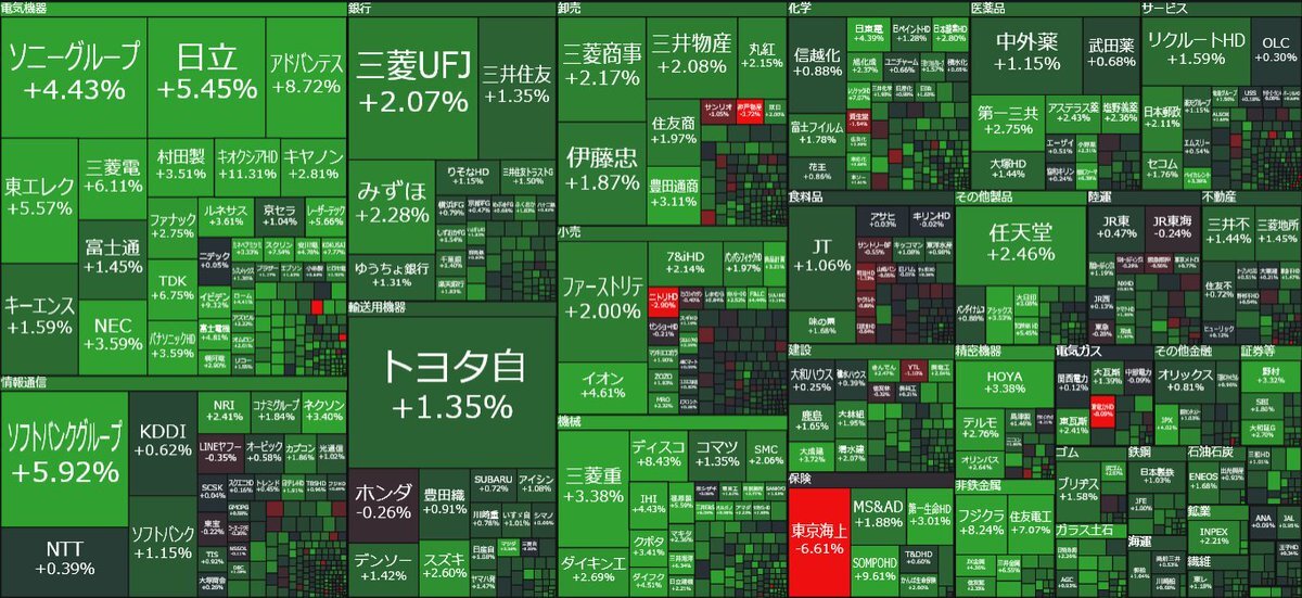 🇯🇵日本株「東証プライム」全面高 グリーンです!(いいんだよ)🤗 上昇 85% 下落 11% 日経平均 一時+2000円高😳 👉️NVDA決算を無事に通過、AI警戒の霧が晴れ、ショートカバーを巻き込み大幅高に ①エヌビディア好決算(時間外+5.5%) ②円安ドル高 ドル円157円台(157.10円) pic.x.com/AfuzwasIqK