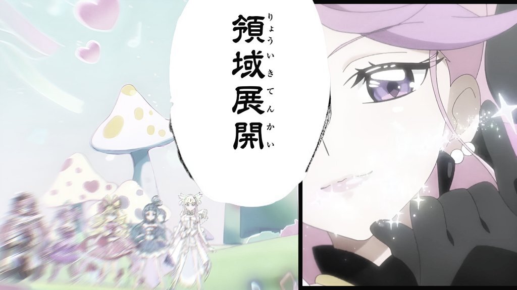 領域展開… 【愛接吻黒庭園 ハートガーデン】 『私の領域は"浄化技"に 必中効果を付与するの』 思い返してみて…? 外れたことないでしょう? "ズキューンキッスディスティニー"も "キラッキランフォーユー"も… pic.x.com/eEVyEoxBX4