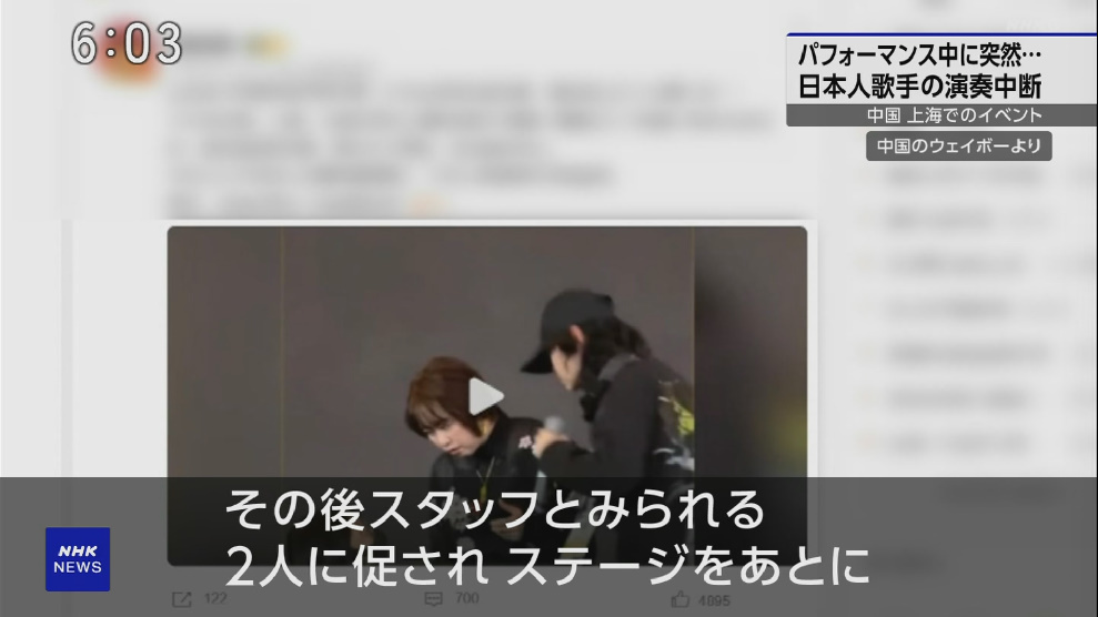 NHKはニュースの中で上海のバンナムフェスが途中で強制中止されたことを放送しているのね。 (勿論、中止させられた側の大人なコメントと中国国民の両サイド(政府支持と懐疑派)も流すのね) 民放はどうなの?見ていないから分からん。