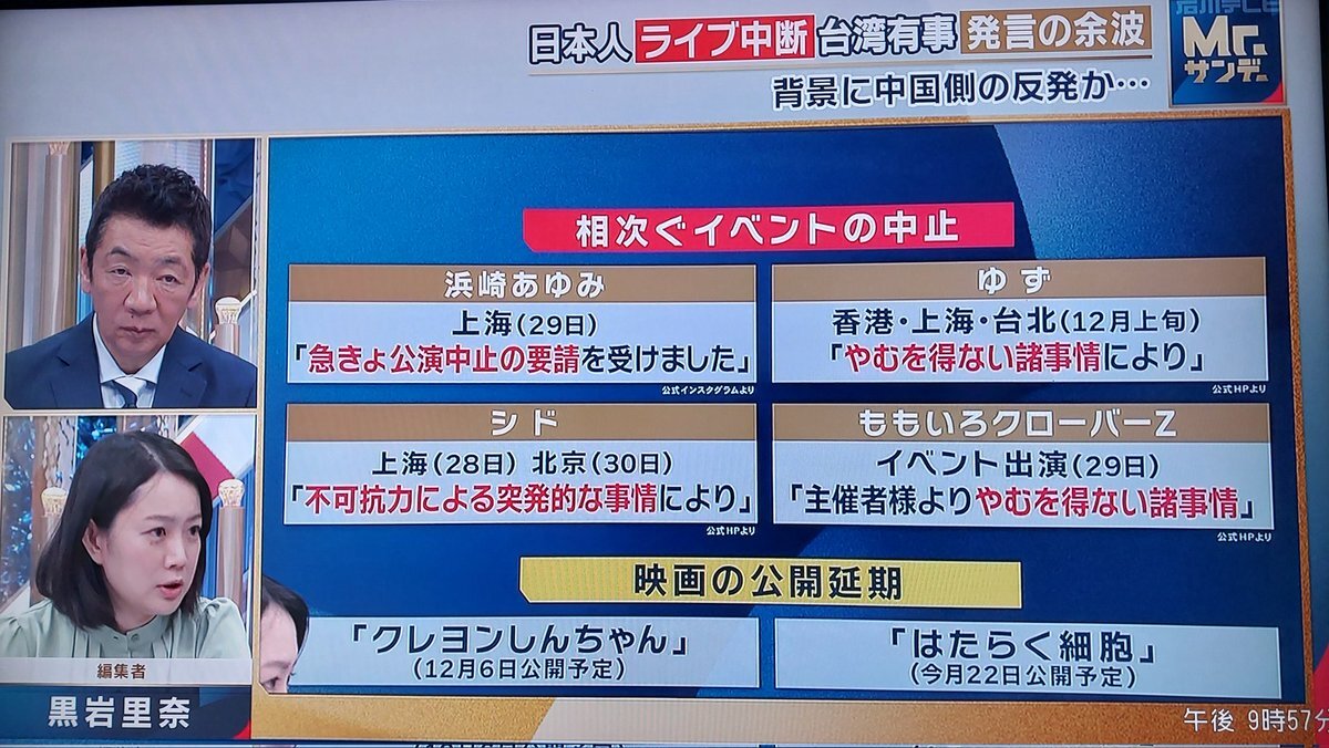 バンナムフェスの時もそうだけど、アーティストやスタッフや関係者は勿論中国ファンも被害者だし可哀想 自国🇨🇳のせいで楽しみにしてた公演が中止になったりステージの途中で強制退場されたらブチ切れるわ x.com/livedoornews/s…