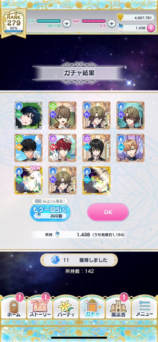 あと私、あと一か月と半月で家主候補と黒獣二人お迎えしないといけないことが確定しました。 今週の鏡ダンジョンやってまだ足りませぬ...最悪家主候補だけは交換できる...ヒースクリフとドンキホーテ.......