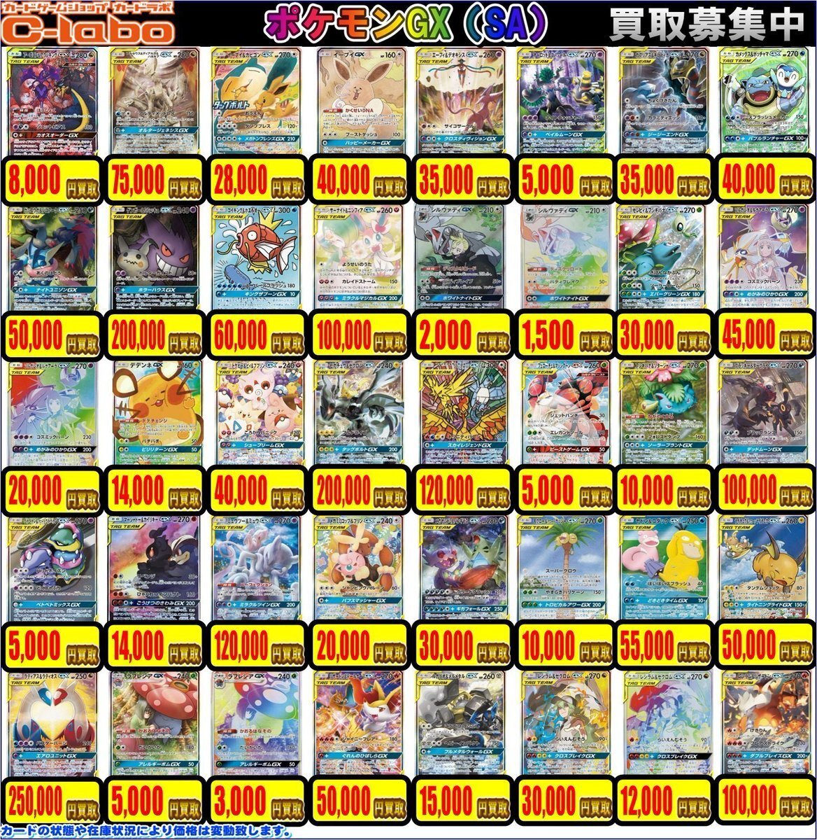 レシラム&リザードンGX(SA)097/095 アルセウス&ディアルガ&パルキアGX(SA)100/095 ブラッキー&ダークライGX(SA)182/173 ピカチュウ&ゼクロムGX(SA)101/095 ミュウツー&ミュウ(GX)SA 098/094 ラティアス&ラティオスGX(SA)105/095 ファイヤーサンダー&フリーザーGX(SA)060/054