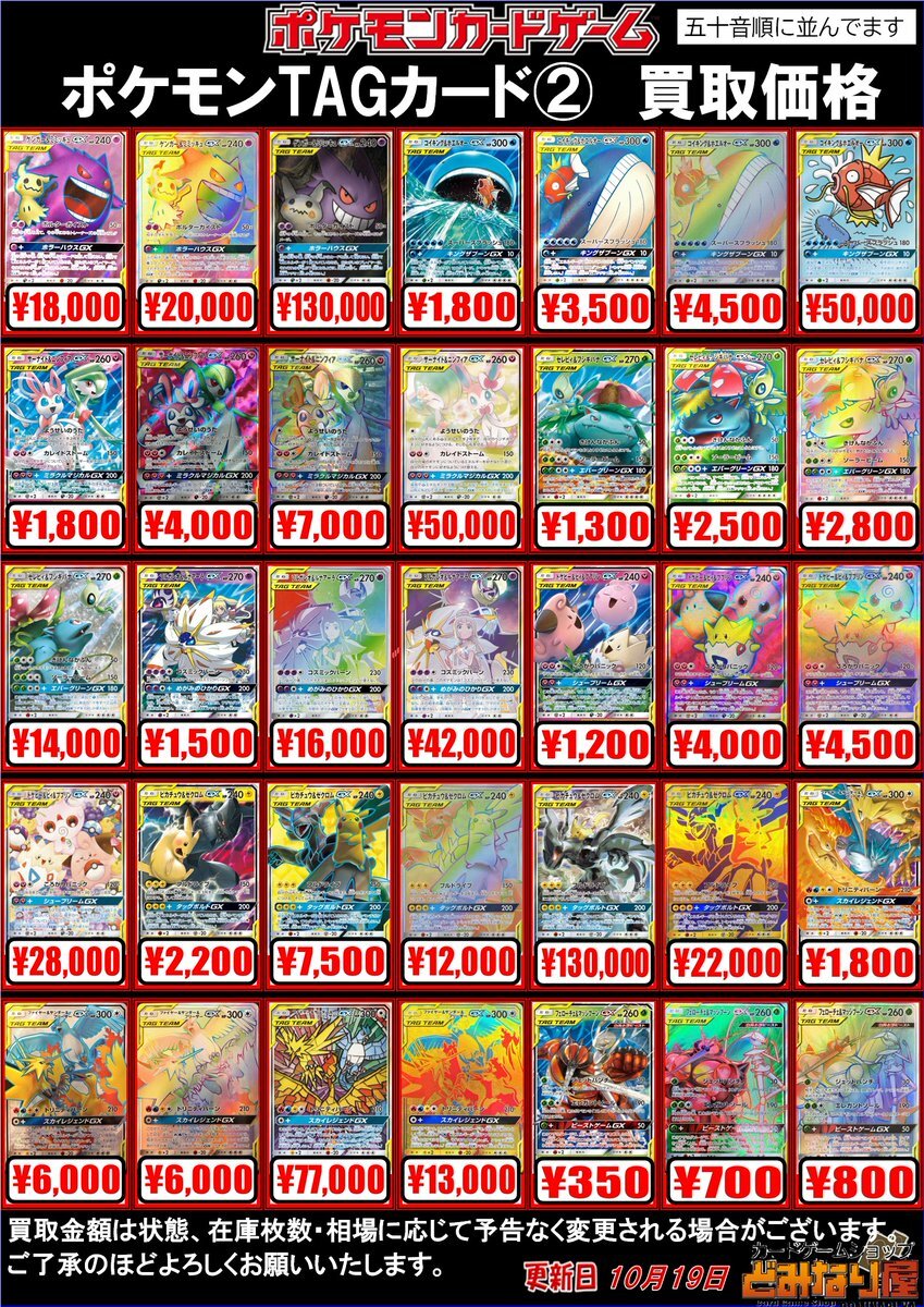 【#ポケモンカード】 📢TAG買取価格② コイキング&ホエルオーGX¥1800/3500/4500/50000 サーナイト&ニンフィアGX¥1800/4000/7000/50000 ソルガレオ&ルナアーラGX¥1500/16000/42000 ピカチュウ&ゼクロムGX¥2200/7500/12000/130000 ファイヤー&サンダー&フリーザーGX¥1800/6000/6000/77000 等 pic.x.com/nOUOXaX6YR