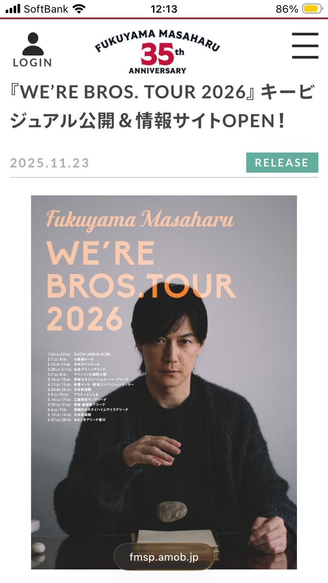 福山さんのオフィシャルサイトで来年のツアーのキービジュアルと情報サイト確認した。 情報サイトにツアーの詳細も書いてあったけど、来年のツアー前半かな?それのファミマ先行あるみたいだね。 前半だと宮城なら近いけど、今のところは横浜優先で頑張ってみようと思ってるし、後半の方が札幌と青森 pic.x.com/WhQJzgUiXb