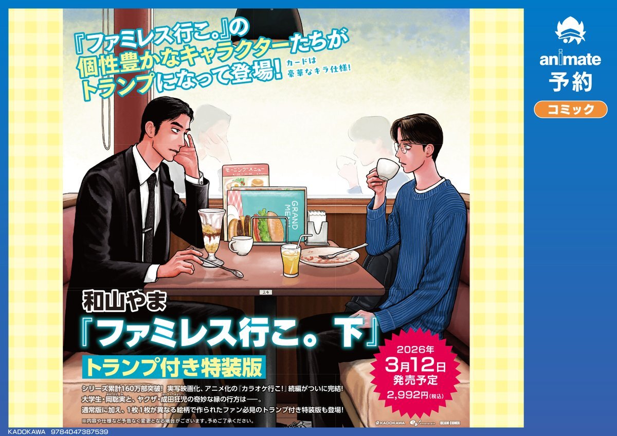🌟予約情報🌟 『ファミレス行こ。(下) トランプ付き特装版』 発売決定✨好評ご予約受付中‼️ #和山やま 先生 ▽バーコード簡単予約がオススメ!  画像タップ→レジでバーコード表示を見せてね animate-onlineshop.jp/pd/3281719/?ut… pic.x.com/6GLfqRsNom
