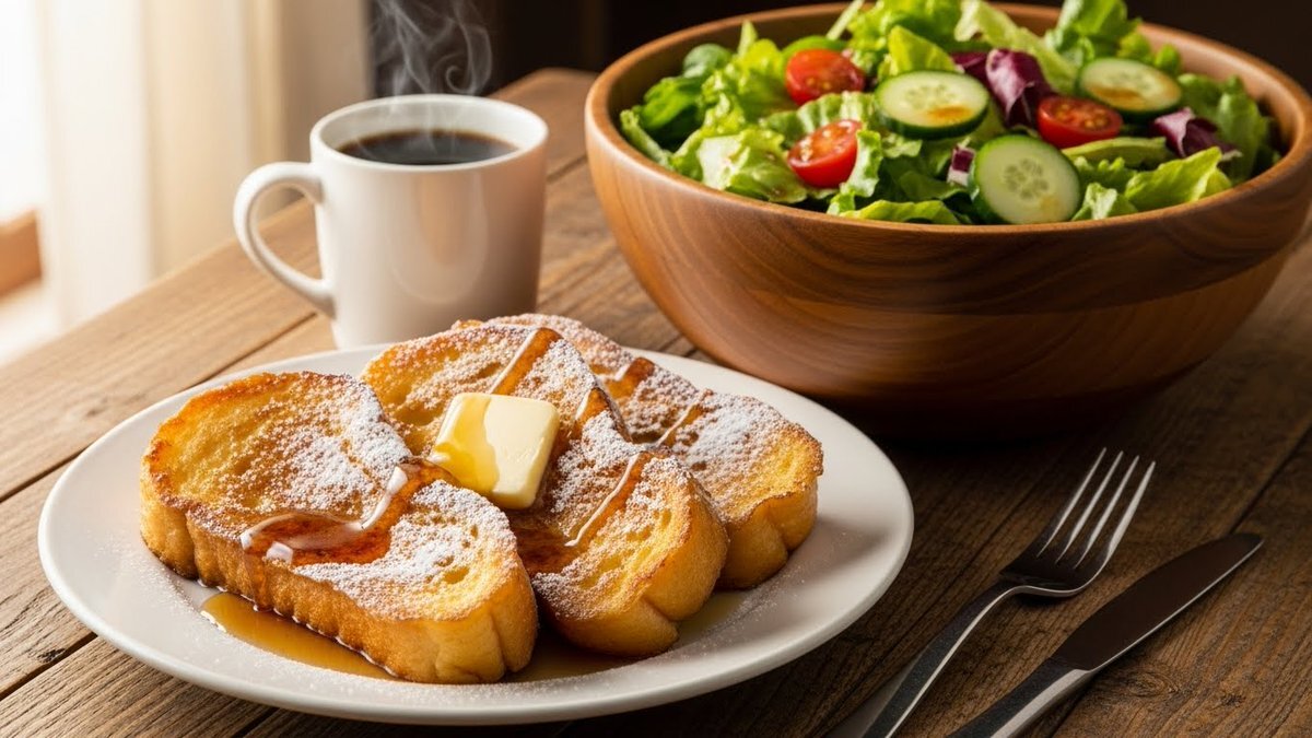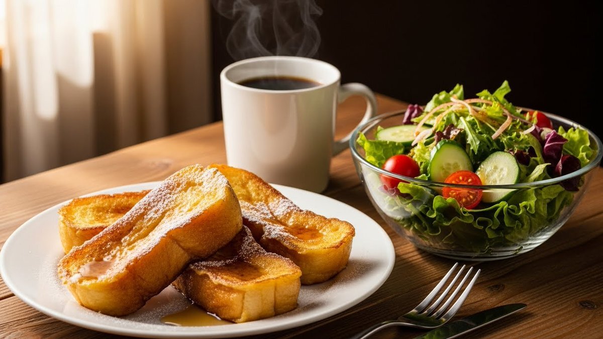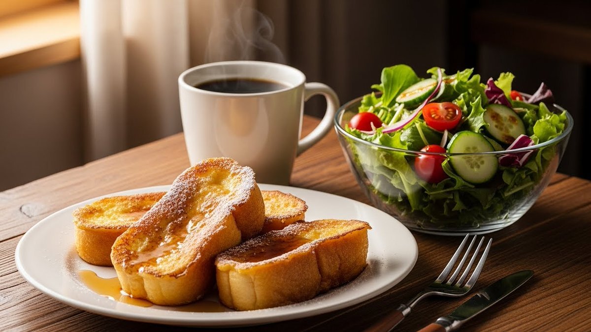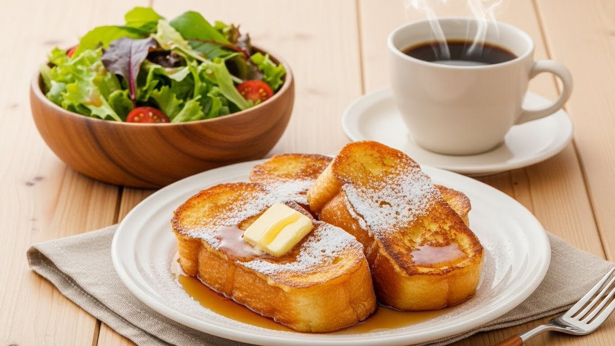 御夜食の御時間で御座います。 本日の御夜食は、11月28日は「フランスパンの日」らしく、フランスパンを使ったフレンチトーストとサラダのセットで御座います。 有難う御座います。 合掌、夜食、礼拝 AIイラスト AIおいしい部 pic.x.com/uuPh5JEzLp