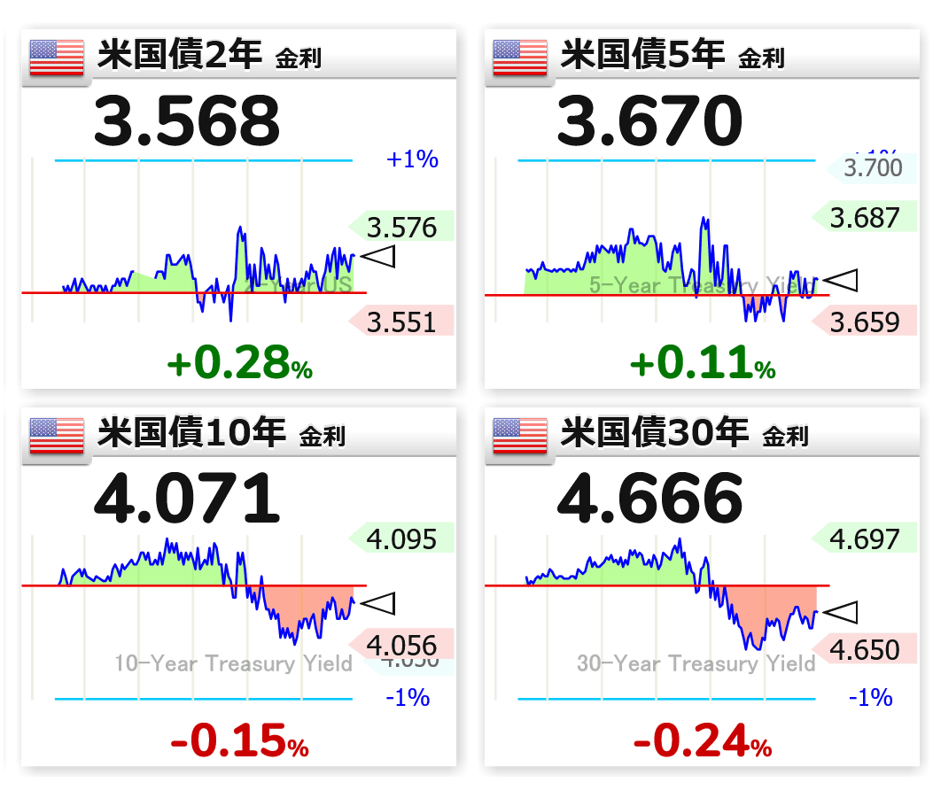 昨夜の米国債🇺🇸の金利(利回り) 長期債が主導で低下⤵️ 🇺🇸ベッセント財務長官の発言が長期債の支援材料になるとの見方や前日の民間雇用データが背景👀 🇺🇸📈米国債2年 3.568 🇺🇸📈米国債5年 3.670 🇺🇸📉米国債10年 4.071 🇺🇸📉米国債30年 4.666 #米国債 $TLT $EDV $TMF #投資家さんと繋がりたい pic.x.com/qWbjONuH0R x.com/glglsti2019/st…