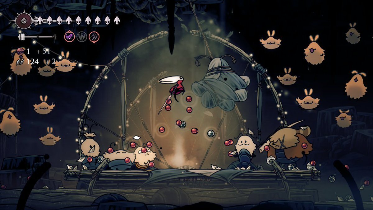 ノミの競技でかなり時間がかかった('ω' ;) スタグちゃんのソニックブーム?多くなって来ると隙がなくなるから大変だった_(:3 」∠)_ #ホロウナイトシルクソング pic.x.com/fVDPkd8gCc