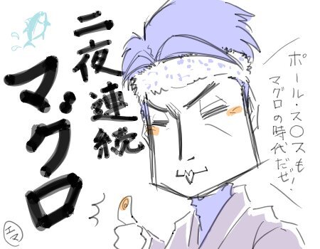 「ゴジラぁ? ヘッ 今はもうマグロよ!」 ポール・ス○スがマグロ推しと聞き、私のネタ心が疼いてつい #シンゴジラ中の人 #二夜連続マグロ