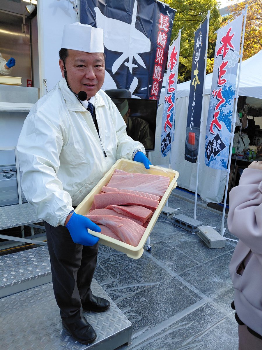 タンパク質を摂取しに魚ジャパンフェスへ 至近距離でのマグロの解体ショーやさかなクンさんの雑学ショーなど、飲食以外のコンテンツも盛り沢山でかなり面白かった 次回は冬に代々木公園で開催。10時開始直後がとても空いてておすすめ pic.x.com/LW1c7Rre3D
