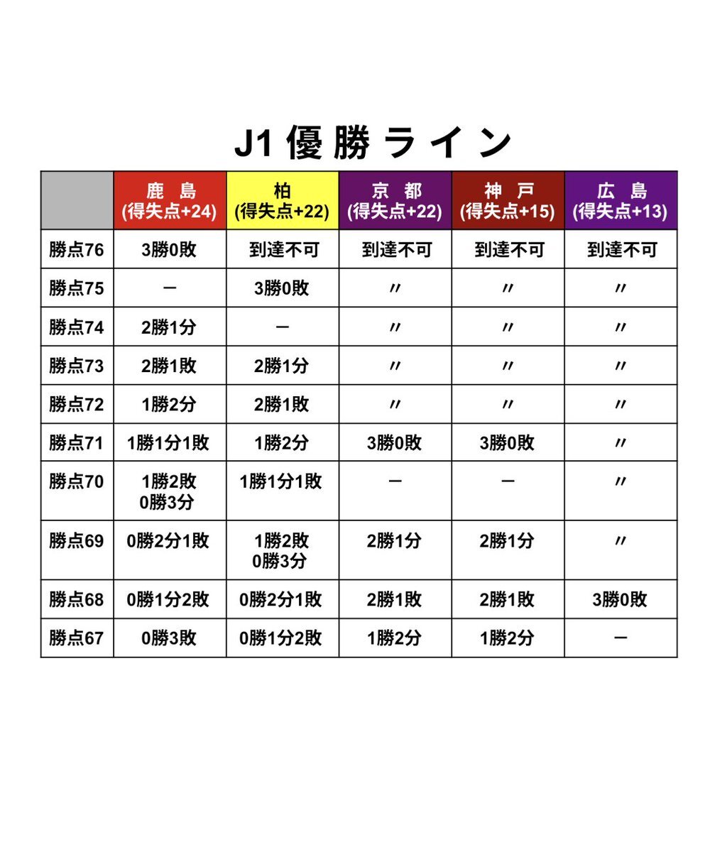 第35節終了時点での上位5チームの優勝ラインです #antlers #鹿島アントラーズ #柏レイソル #京都サンガ #sanga #visselkobe #ヴィッセル神戸 #sanfrecce #サンフレッチェ広島 #Jリーグ