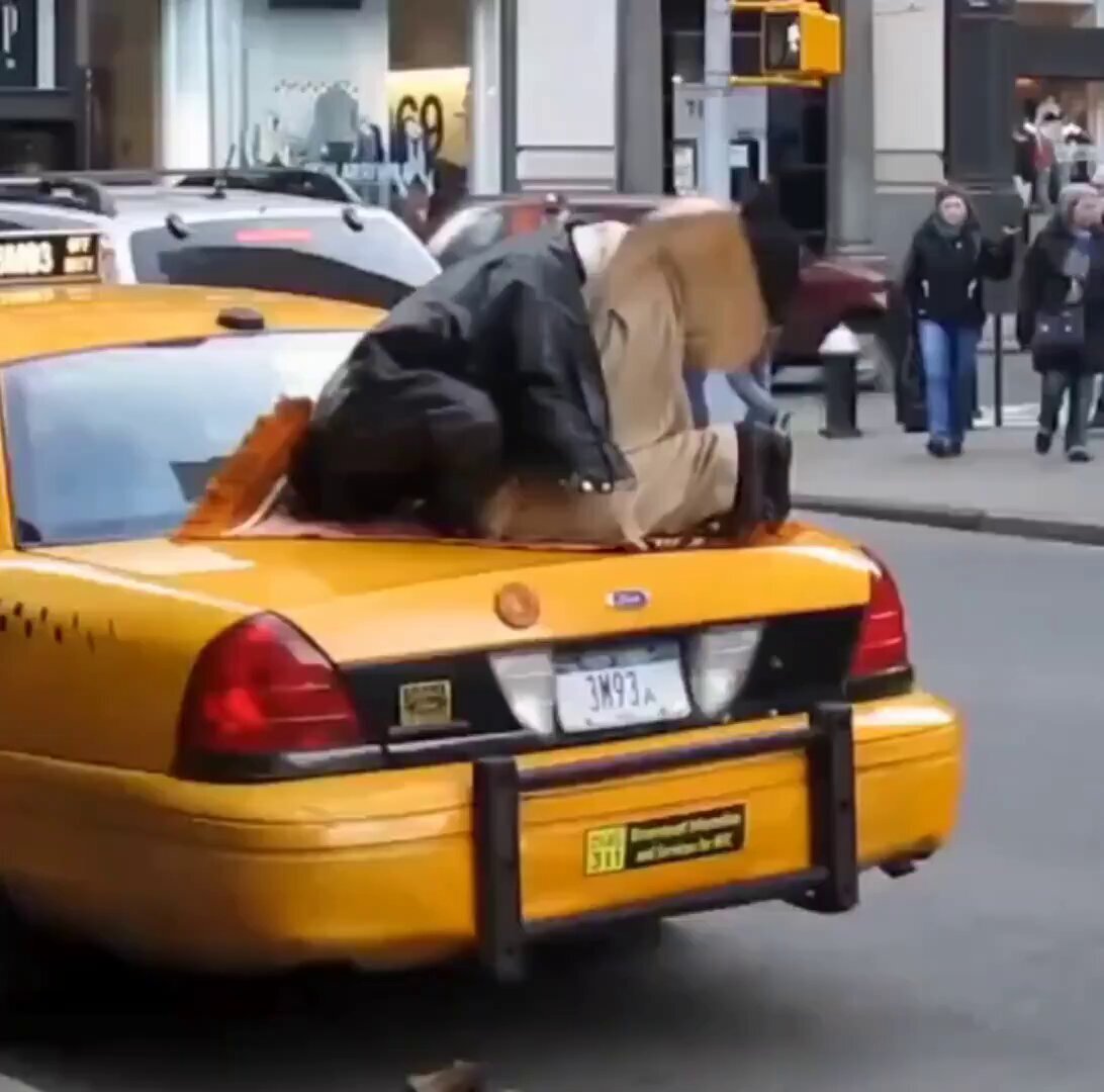 🚨🇺🇸 ニューヨークで信じられない光景。 黄色いタクシーの“トランクの上”に座り込み、 そのまま礼拝を始める男性が撮影されてしまう。 街中で停車中の車の外側に乗る行為なんて、 危険すぎて周囲も完全に困惑。 宗教とか文化以前に、 「車を足場に使う」という行動そのものが問題になる。