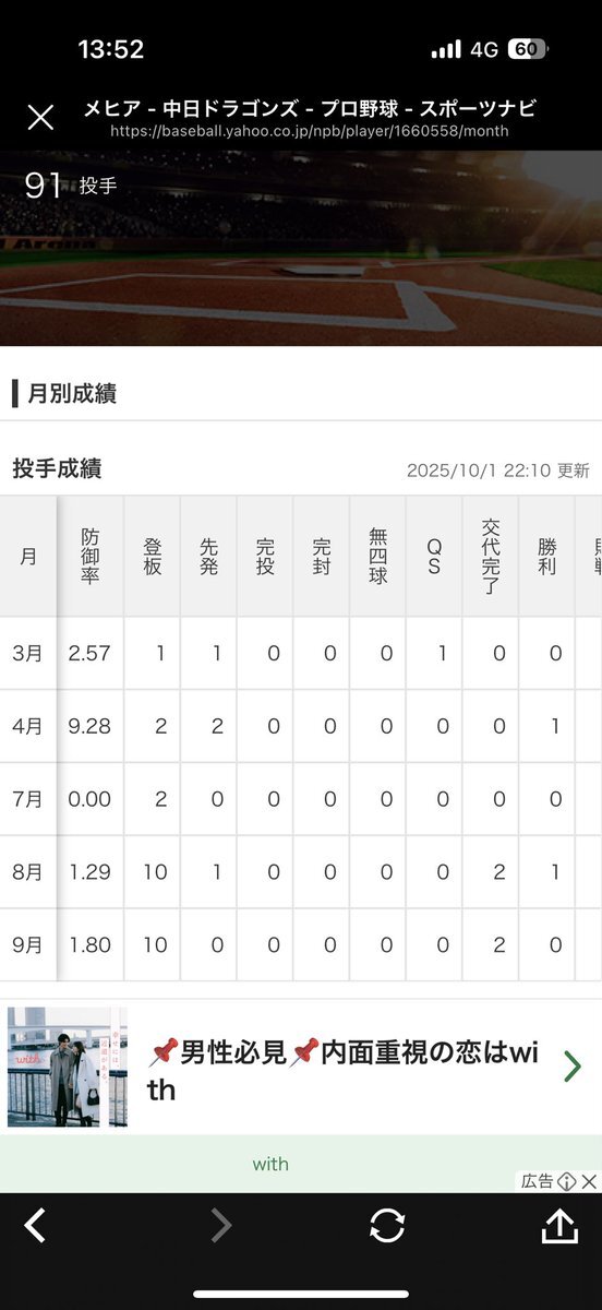 まあそりゃメヒア残るやろうなって感じ 救援メヒアと藤嶋だったらメヒアのがスタッツ良いしね。