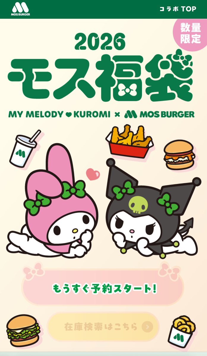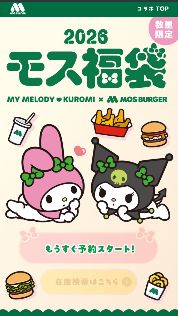 今年のモス福袋は熱い!! 11/25からネット特別予約開始 マイメロディ&クロミ×モスバーガー 2026モス福袋 モスバーガー公式サイト share.google/kDCXoleBEKL7ng…