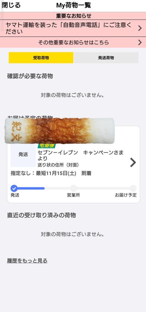 明日セブンイレブンから当選品のバウムクーヘン&フィナンシェが届く! 取り引き業者の関係でヤマト運輸以外は使えないからね。 常にアプリでチェックして今か今かと首を長くして待ってたw 土曜日配達のパターンもあるのね。明日予定入れてなくて良かった! とりま、フリーから午前中に変更したよ x.com/esplover/statu…