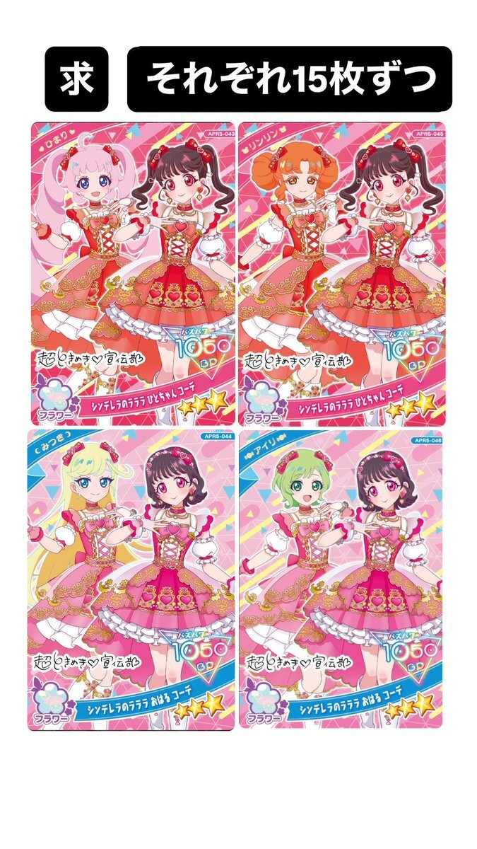 返信先:@HiRy65194222お世話になっております。 じゅりえるビビコンプ目的の2枚ずつ以外は全て出せますので、カルスタ全員お願いできますでしょうか? リング5だんは800↑回します!