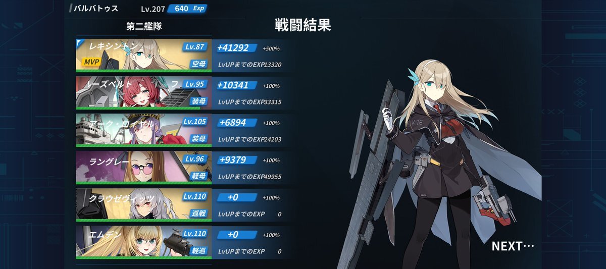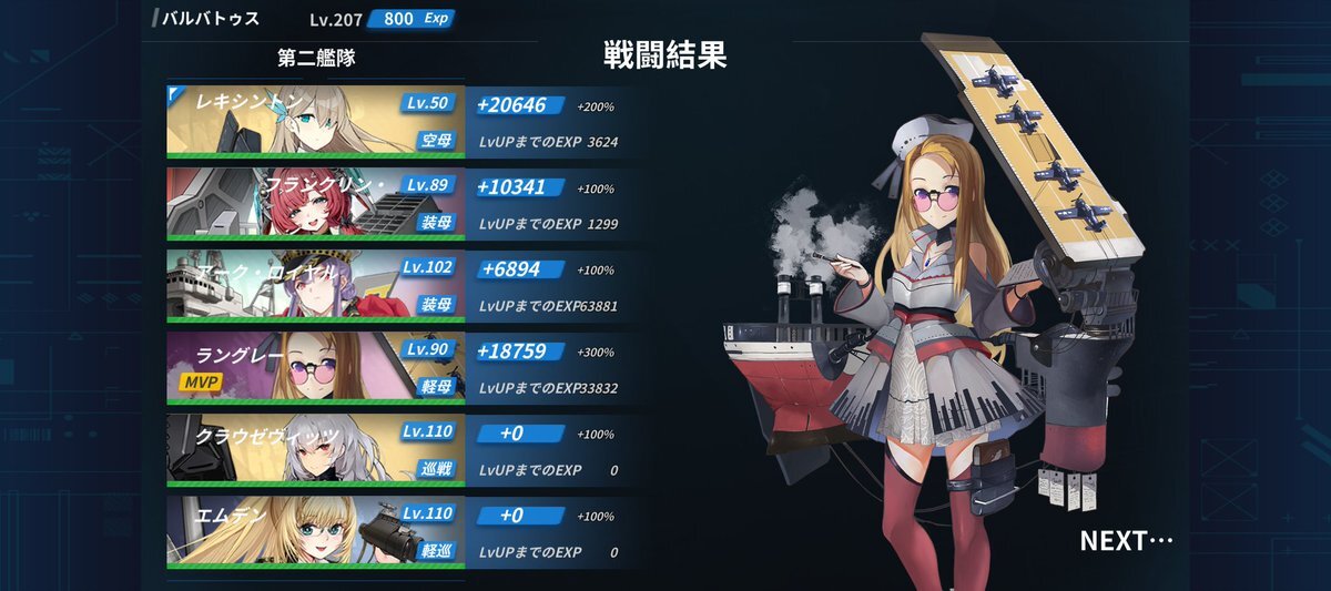 弾薬ペナ無効つけてE-12下ルート5戦レベリング 上手くいけば1日でレキシントンのレベル90到達するけど被害防ぐためラングレーにそれなりの火力持たせるとMVP取られがち問題 pic.x.com/OhdlQGHMwi
