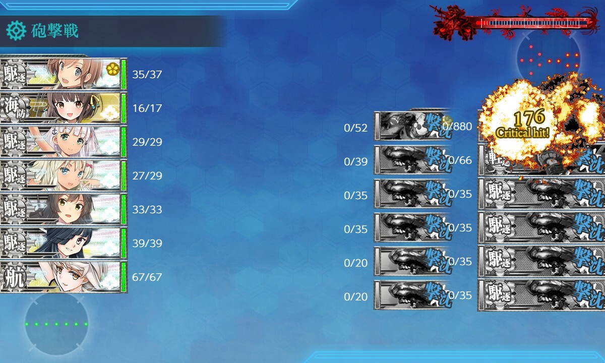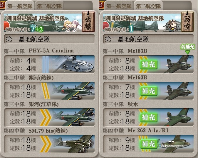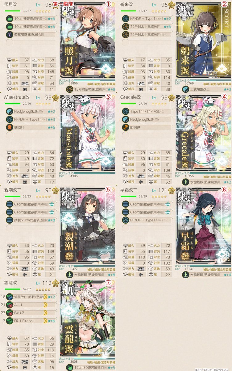 #艦これ #E1甲 E1-2削り(上ルート) 5出撃S3A2 基地航空ボス 艦隊制空160(空襲劣勢) 3回目から決戦砲撃支援(命中重視) J警戒,対戦単横,空襲輪形,ボス単縦 対潜支援をケチるために先制対潜4枚、ボスは随伴が弱く手数が重要なので決戦支援は入れると便利 鵜来ちゃん退避しても索敵は足りた pic.x.com/r1gYle2jWl