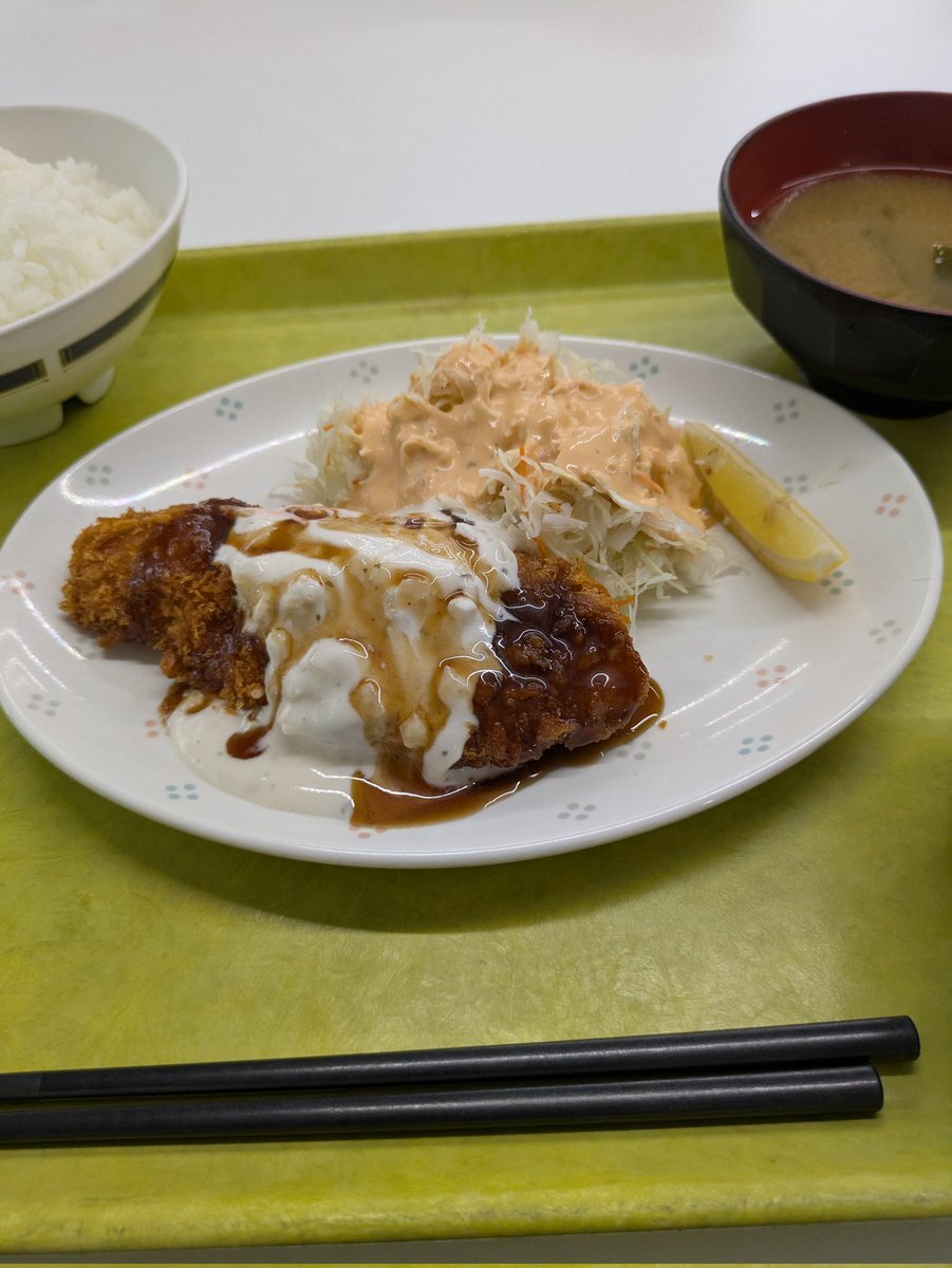 令和7年10月28日(火)一粒万倍日🌾大明日✨️母倉日🌾 投稿が遅れましたが、今日のランチは社員食堂のサーモンフライ(税込390円💰️)を頂きました😋🍚🐟️ ごちそうさまでした🙏 #サラメシ #昼飯の流儀 pic.x.com/TzVoHaYKz7