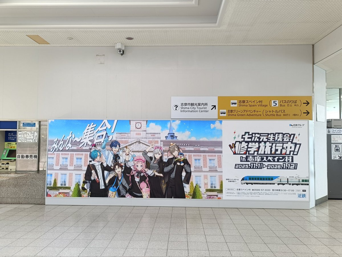 鵜方駅 改札出て正面 臨時窓口塞いてまるまる掲示スペースになってる 2025/10/29 Wed #スペイン村 #志摩スペイン村 #パルケ #パルケエスパーニャ #七次元スペイン村 #七次元生徒会栄冠 pic.x.com/c2KV899ESx