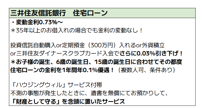 三井住友信託銀行の住宅ローンについてまとめた。 smtb.jp/personal/loan/… ✅財産管理の目線から、「不測の事態から守る」をしっかりとしている印象 ✅また、手続きがいるものの、お子様がいる家庭にはうれしい、年率の値下げ 上記2点が強い印象。 pic.x.com/ZzP8Nsg0uK