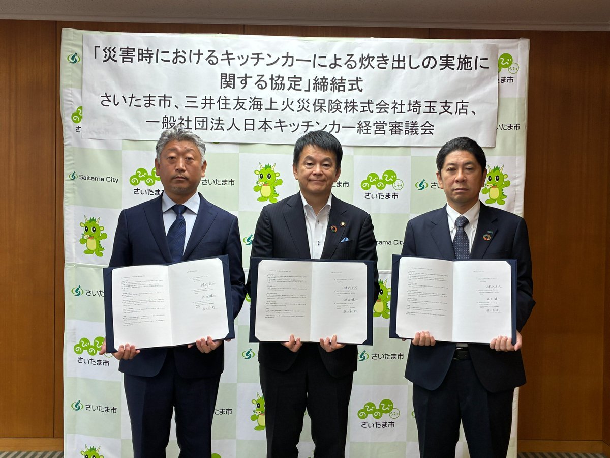 2025.10.23 三井住友海上火災保険株式会社埼玉支店、一般社団法人日本キッチンカー経営審議会と「災害時におけるキッチンカーによる炊き出しの実施に関する協定」を結びました。災害時の避難所で、温かい食事の提供を可能にし、キッチンカーにトラブルが発生した際の対応も行うことができます。 pic.x.com/8qxhi2d4as