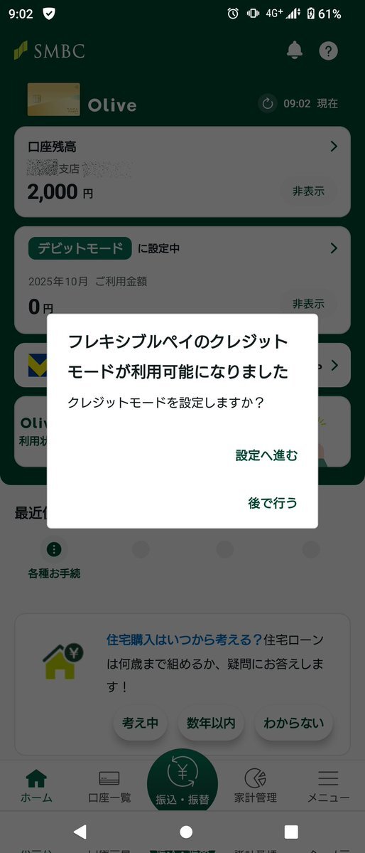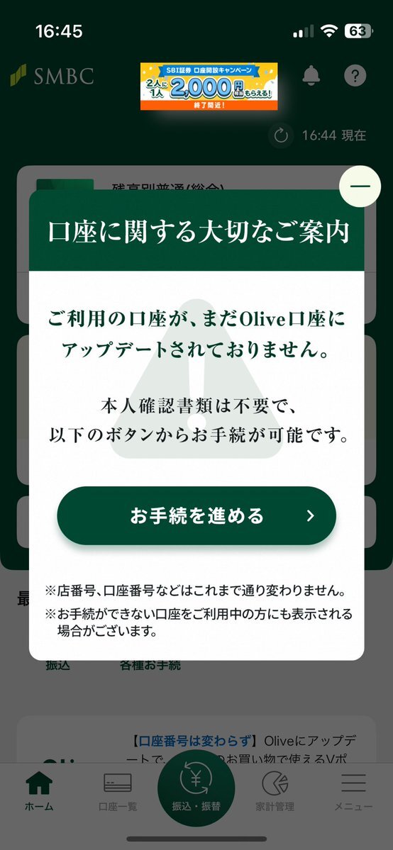 Oliveにどんな利点があろうがこういう勧誘方法を使ってくる時点で絶対切り替えないし次の日ライフステージ変更の折に三井住友はメインバンクから外す予定で準備してる。鬱陶しいんだよ