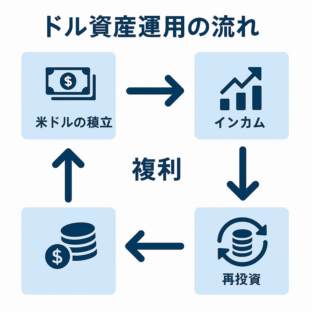 「円転」を考えない「米ドル」資産運用  証券会社の特定口座やNISA口座を通じて、米ドル建てETF(上場投資信託)を積み立てる方法だ。インカムドルをそのまま再投資して複利を享受する。必要な時に必要な分だけインカムを「円転」する。の玉子($)を産むマネーマシンだ。 メリット: pic.x.com/ahPrTJainh