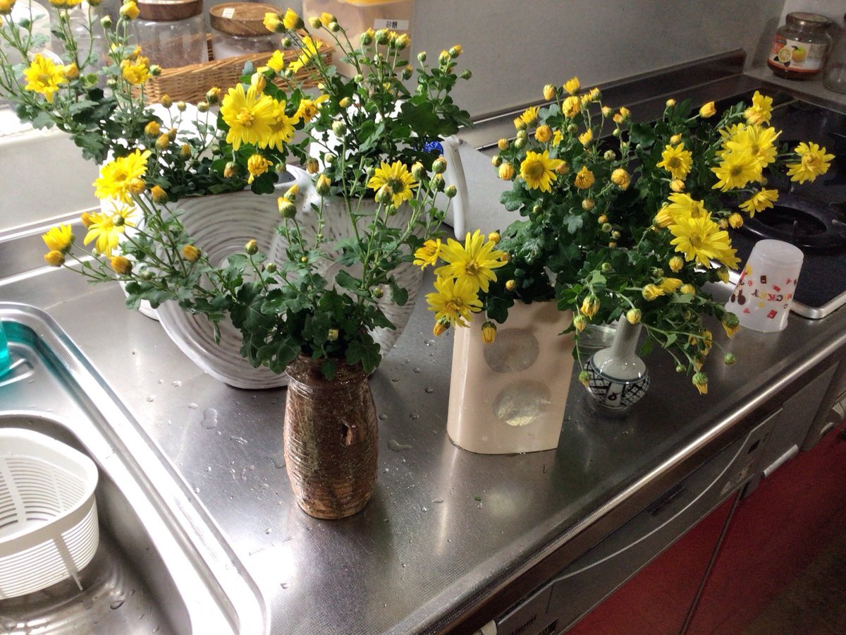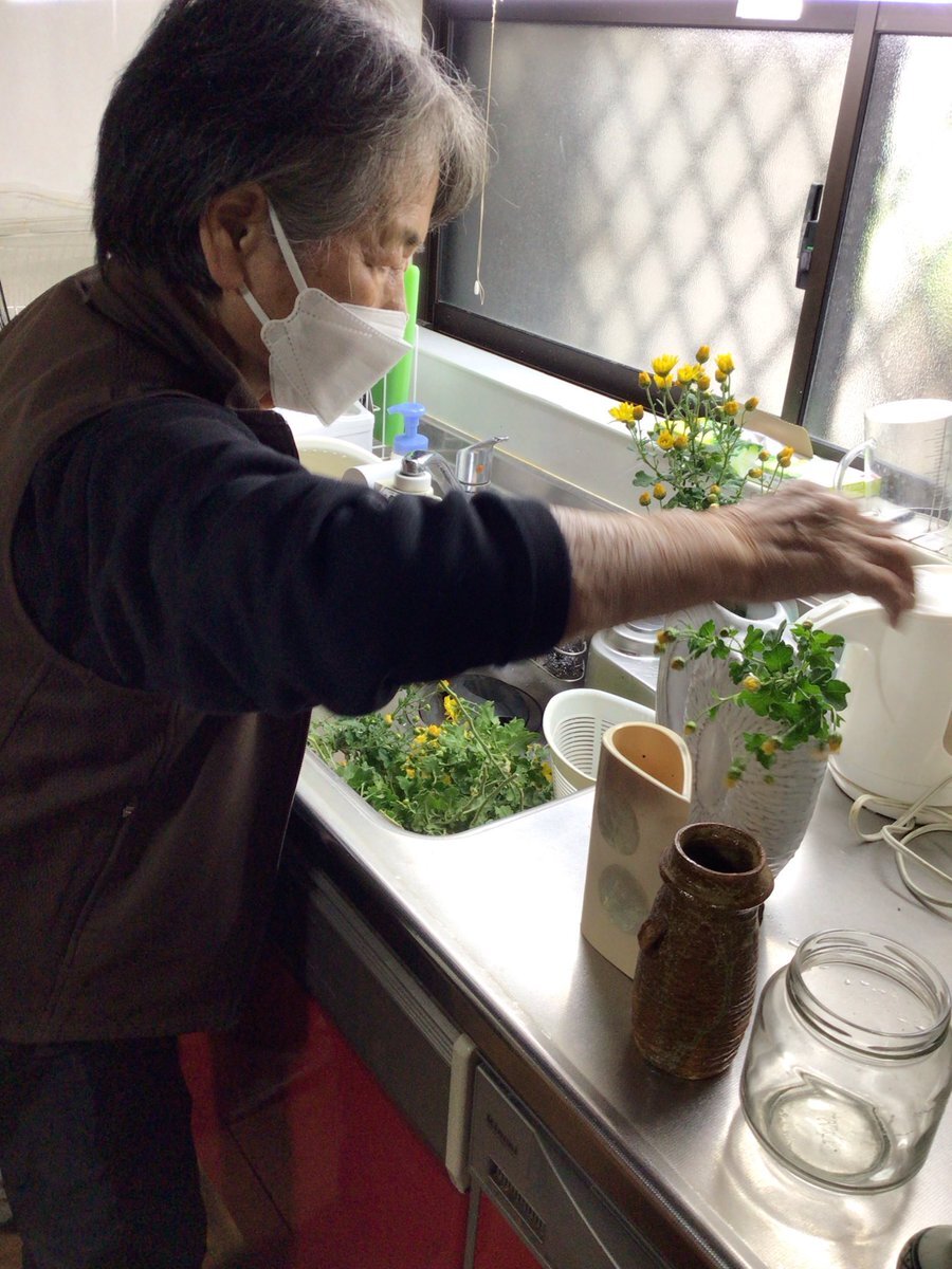 利用者様のお庭で育った菊の花を持ってきて下さいました。お花好きのご利用者様に綺麗に生けていただきました。 夏は暑さのせいか弱っていた菊が復活したと持ってきて見せてくださいました。暑さに負けそうになったけれど元気に復活したと、いいお話を聞けてほっこりしました。🙂 pic.x.com/LCFTSRWfY7