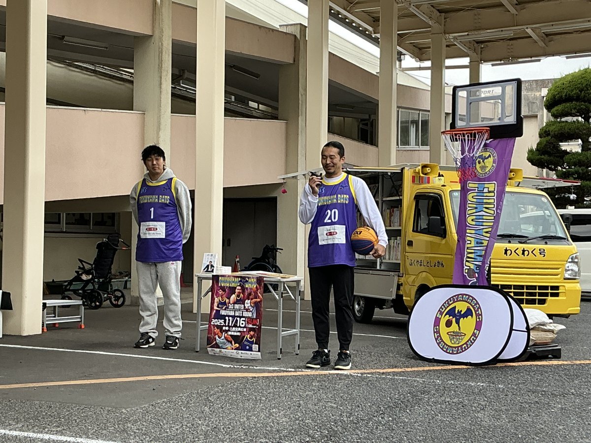 本日FUKUYAMA BATSの河相 智志代表兼選手と夏 達維選手が福山市の移動図書館わくわく号と来校して下さいました。バスケットを通じて交流したり、絵本の読み聞かせや手品をしたりと、温かく接してくださいました。選手の皆様ありがとうございました。16日のホームゲーム頑張って下さい!#FUKUYAMABATS pic.x.com/1gBlF925xX