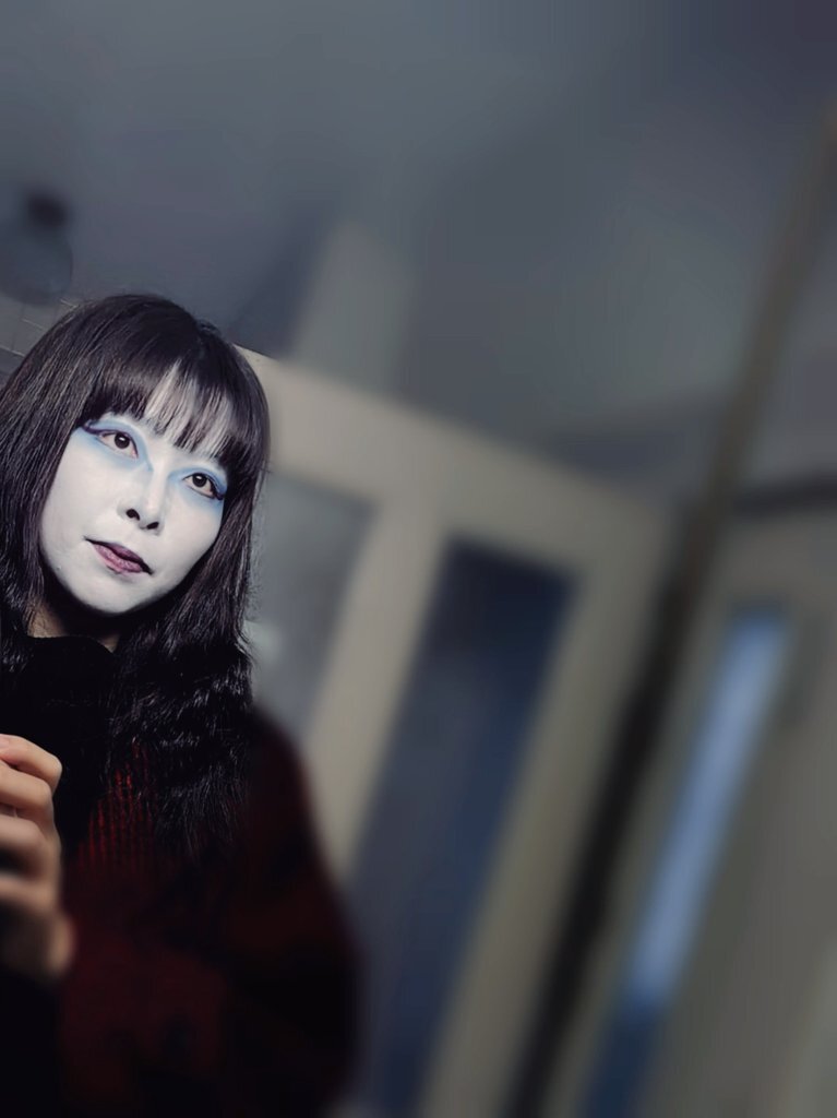 記録。 先日の公演の舞台メイクを珠子が担当してくださいました。 自分にはあまり似合わないと感じていた水色を、流れるように素敵に目元に広げて下さり、鮮やかなピンクを重ね、役柄にぴったりなメイクをして下さいました。 彼女のセンスは本当に素晴らしく、 いつも幾度も驚かされます、、 pic.x.com/K0pvJrxiHw x.com/yubusha_butoh/…