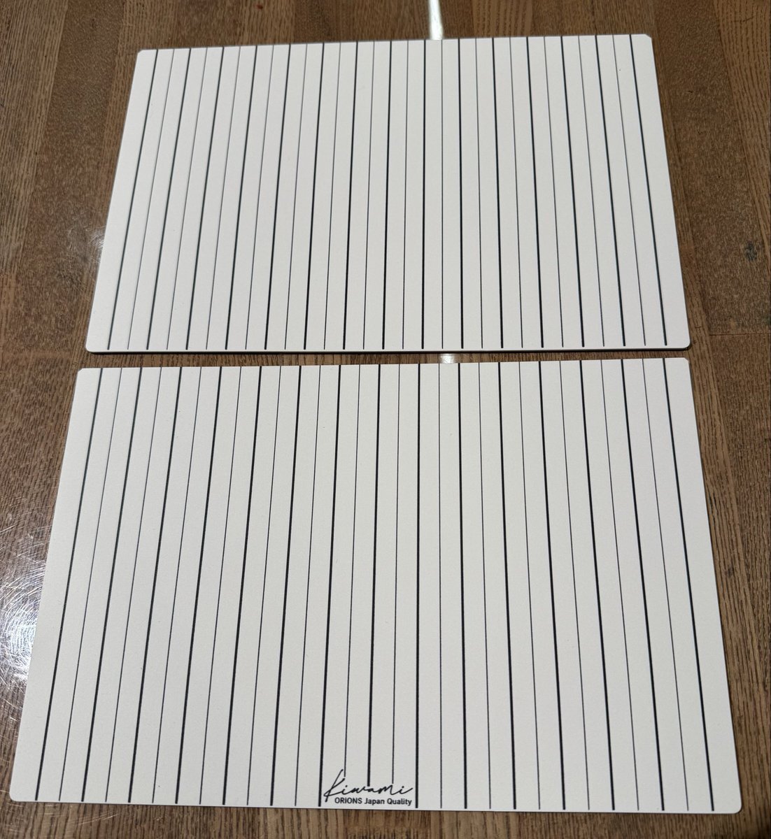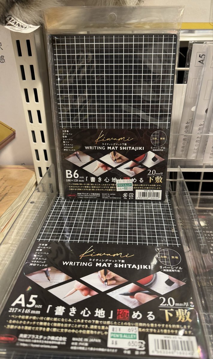 店長「多分もう少し待っていれば発売されるから、それからにしたら?」 私「待てない。こういう下敷きがほしくて待っていたんだから。」最初の黒色で方眼のA5が良いんだわ。 という事で半分にカット。使いやすい。 #下敷き革命が再び #ペンズアレイ店主お気に入り #極み下敷き黒色から白色 pic.x.com/75sVg6Q2hV