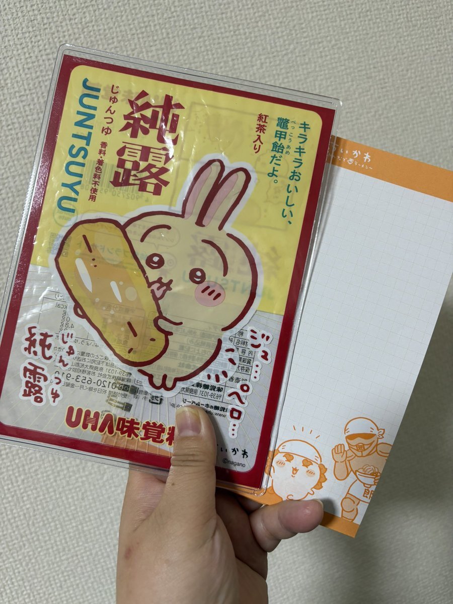 A5の仕事ノートが無くなったので、家にあった一番くじのちいかわノートにしたらB6サイズみたいで下敷合わなくてカードケース買って使ってたんだけど… 純露のパケ少し端っこ切って微調整したらピッタリ入った⸜(*˙꒳˙*)⸝カワイイネ pic.x.com/qr2cKZ87aD