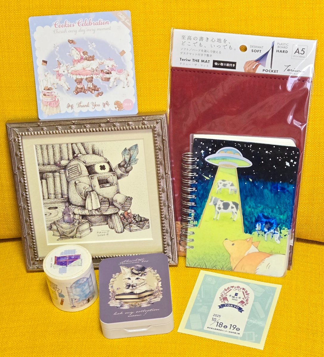 手帳の市2025秋🍁 田中かなさん(@kanaten10ten)にオーダーしていた絵画をお迎えしてきました🥹✨ 今回もありがとうございました(*- -)(*_ _) 卯月小春さん(@HALS_9000)のウシちゃんもお迎え🐮🛸(*´ω`*)💕 そして、ずっと探していた、好きな書き心地のA5サイズ下敷き✏️ やっと見つけて歓喜🙌 pic.x.com/xPAmH58b6q