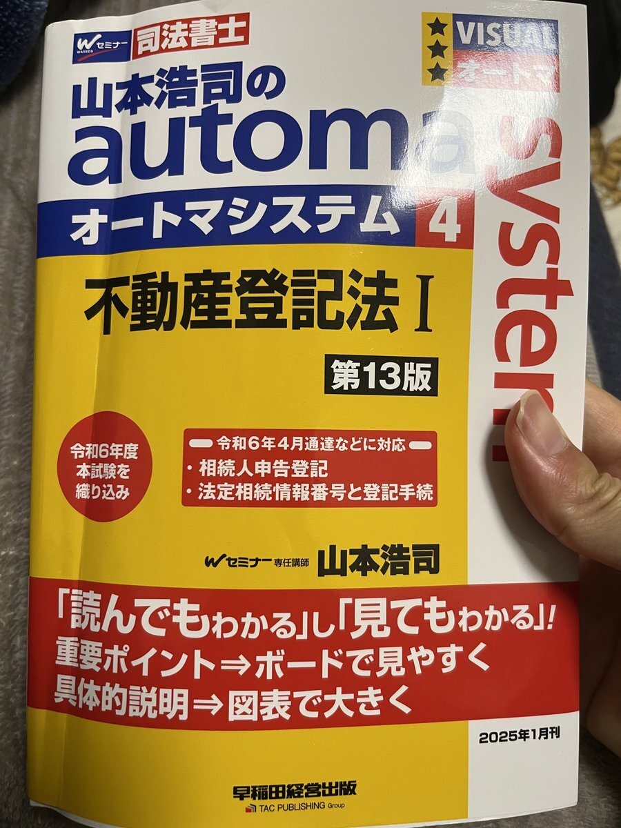 2026年度版 山本浩司のオートマシステム オートマ過去問 解法術 記述編 不動産登記法 山本 浩司 「試験問題の読み方、解き方を手取り足取り」「どこからどうやって解いたらいいのかわからない」「問題文の量に圧倒される」といわれる記述式試験… 11/28 本日発売 amzn.to/4pxhXFl