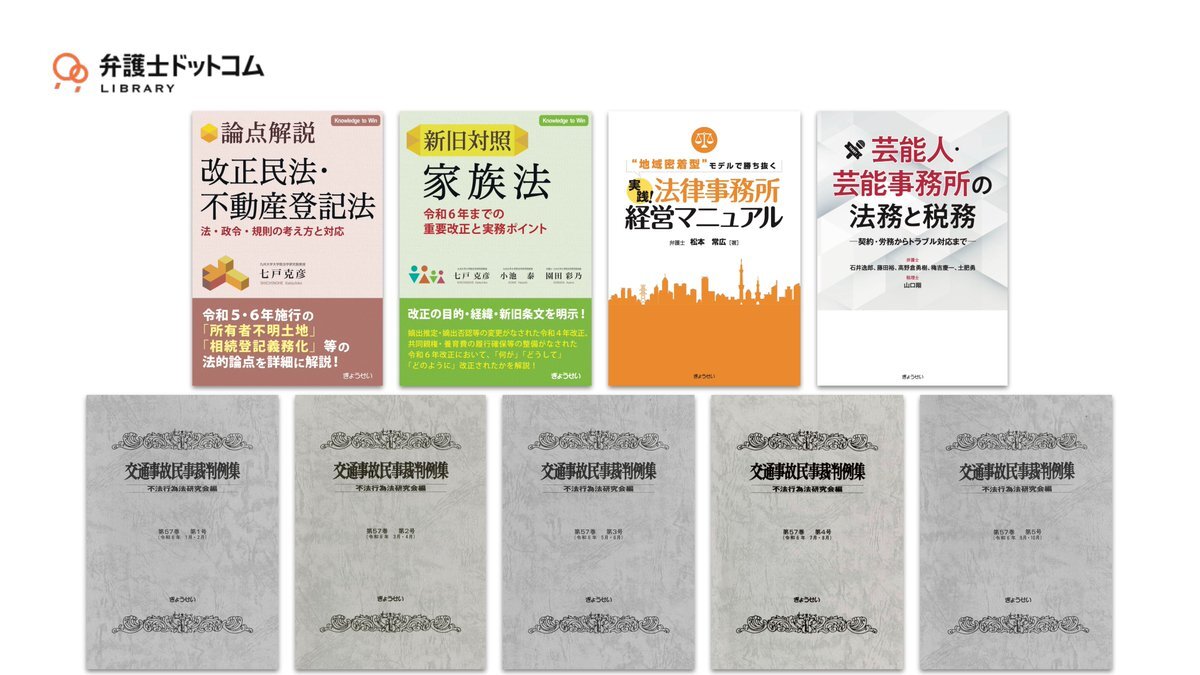 【書籍公開情報】 #弁護士ドットコムLIBRARY 公開書籍のご紹介です。 ぎょうせいの『新旧対照 家族法』はじめ、書籍9冊を公開しました。 『論点解説 改正民法・不動産登記法』 『新旧対照 家族法』 『実践! 法律事務所経営マニュアル』 『芸能人・芸能事務所の法務と税務』 『交通事故民事裁判例集 pic.x.com/cBIsw0QJEM