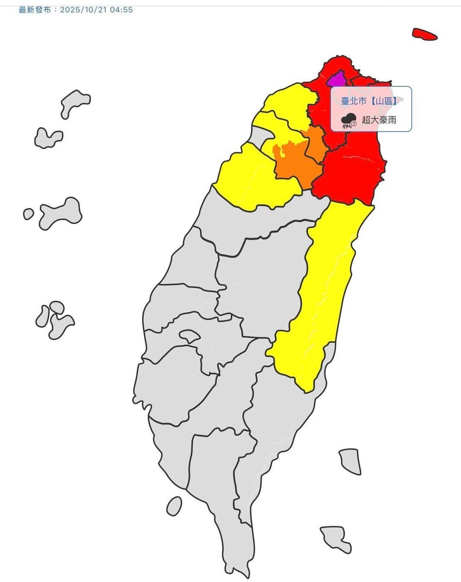 台湾。🇹🇼。 中央気象局は今朝、台北市の山岳地帯に対し「大雨警報」を発令し、当面の間、山岳地帯への不要不急の外出を控えるよう呼びかけました。 観光で滞在中の方は無理せず安全に注意を。 pic.x.com/M6ZTY0puxT