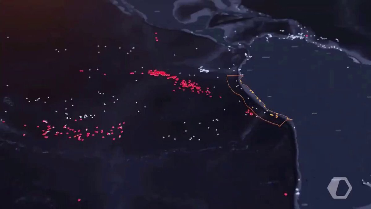 赤い点は、2024年に中国の漁船がペルーのEEZに群がる様子を示しています…という映像 x.com/DWalpiri/statu…