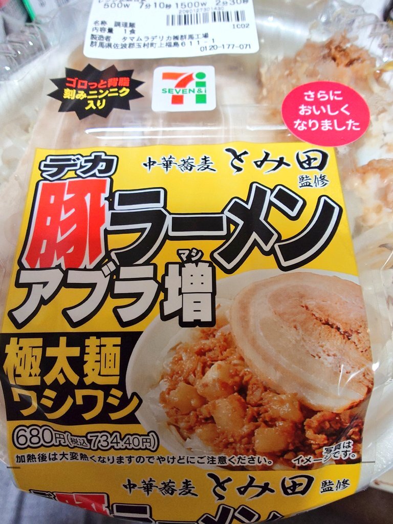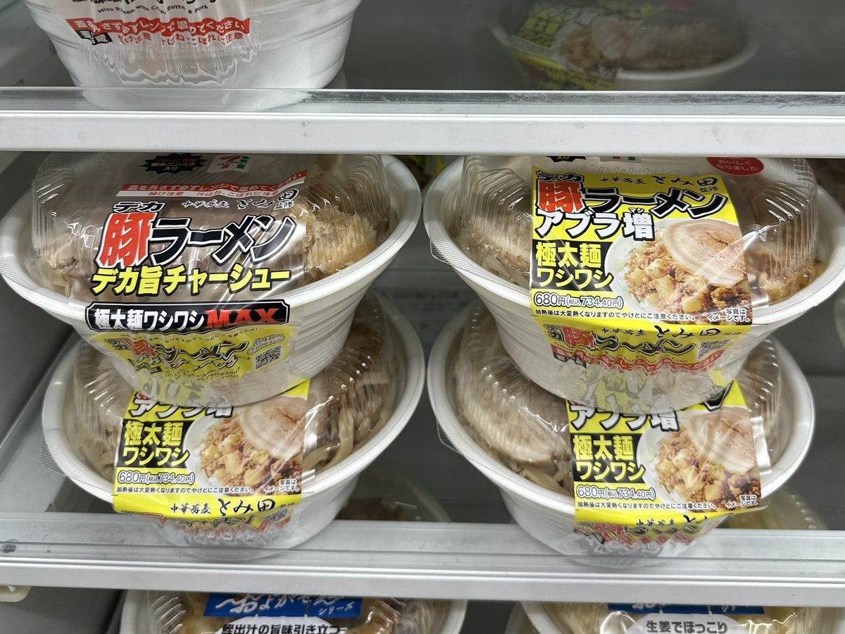 さっきセブンで、今までの豚ラーメンも売ってたけどこっちに切り替わるのかな? それとも、アブラ増季節限定なのかな? セブン-イレブン“中華蕎麦 とみ田”監修の「デカ豚ラーメン アブラ増 極太麺ワシワシ」と「家系ラーメン」を発売(グルメ Watch) news.yahoo.co.jp/articles/a4f89…