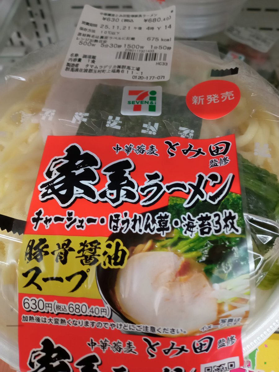 中華蕎麦とみ田 監修 @tomitahonten 家系ラーメン 待望のとみ田さん監修の家系ラーメンが 本日よりセブンイレブンにて販売開始🍜 @711SEJ 後ほど実食したいと思います🙋♂️ pic.x.com/aCSUvmW8ai