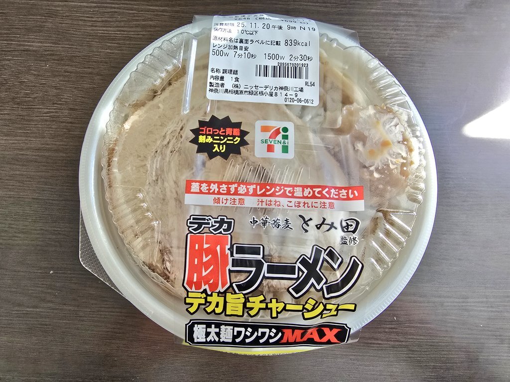 「中華蕎麦とみ田監修 デカ豚ラーメン アブラ増(734円)」 2025年11月19日発売、セブンイレブンの新商品。 千葉県松戸市の人気店「中華蕎麦とみ田」が監修した、食べごたえのある豚骨醤油ラーメンです。 ワシワシ麺・デカ旨チャーシュー・野菜・背脂ニンニクが特長、クセになる「二郎系ラーメン」。 pic.x.com/Z3cA3reKLn