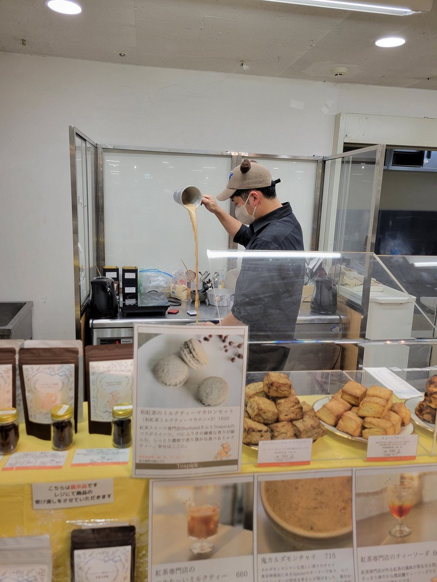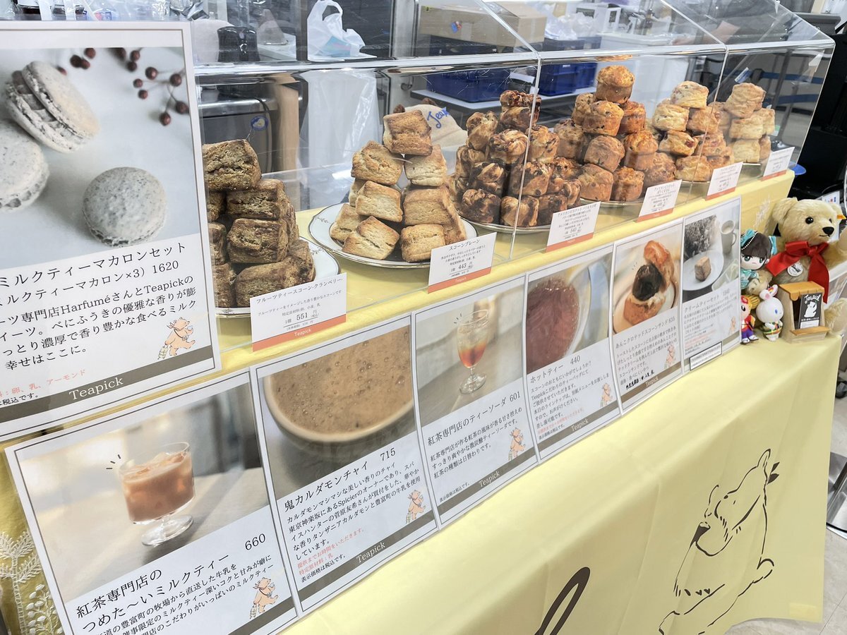 #スコパ 最終日、病院帰りに寄ったら凄い混んでてびっくりした😅 @teapick_teapick さん目当てでスコーンリピ買いとチャイ買って帰るだけのつもりがまたあんこ食べたくなってイートインしちゃいました🤤これ美味しすぎる! イラストの🧸、口なのか二重アゴなのか気になる #丸井今井札幌本店 pic.x.com/N0aF5SQbvX