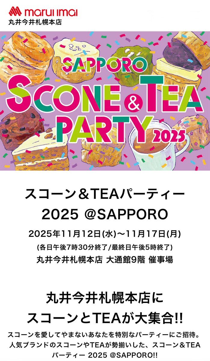 おでかけするならココ! 札幌の週末おすすめイベント3選【2025年11月15日~16日】 #丸井今井札幌本店 #スコーン&TEAパーティ2025🎪 @cfm_domingo より domingo.ne.jp/article/53604
