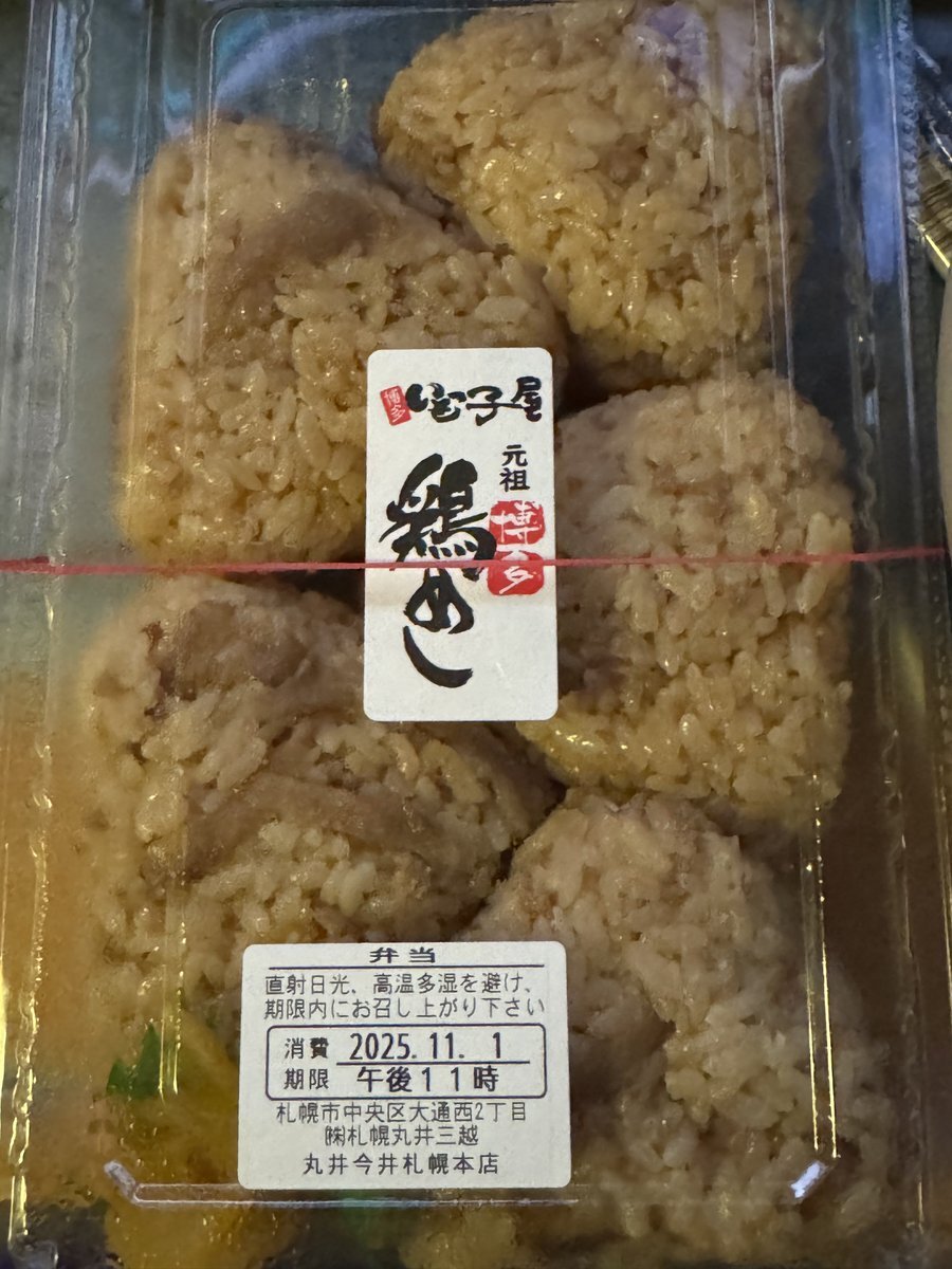 丸井今井札幌店第136回全国うまいもの大会にて。愛知・地雷也の天むすと福岡・博多いもっ子屋の鶏めし。湯気でくもってしまった。 #OnigiriAction pic.x.com/GdzeqppfR8