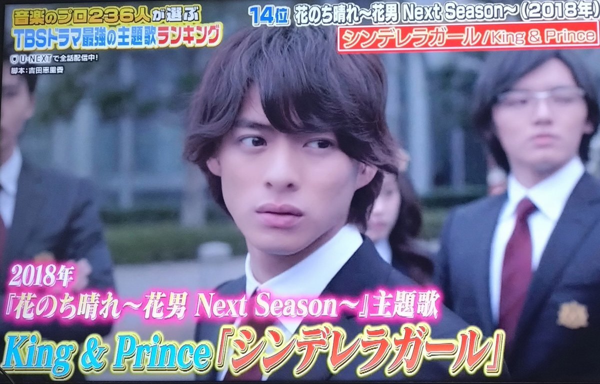 ドラマ主題歌ランキング 入ってたらいいなと録画していたら 花晴れ入ってた✨神楽木晴〜✨ デレラとカッコかわいい紫耀くん😭😆 pic.x.com/74b4RYNMSk